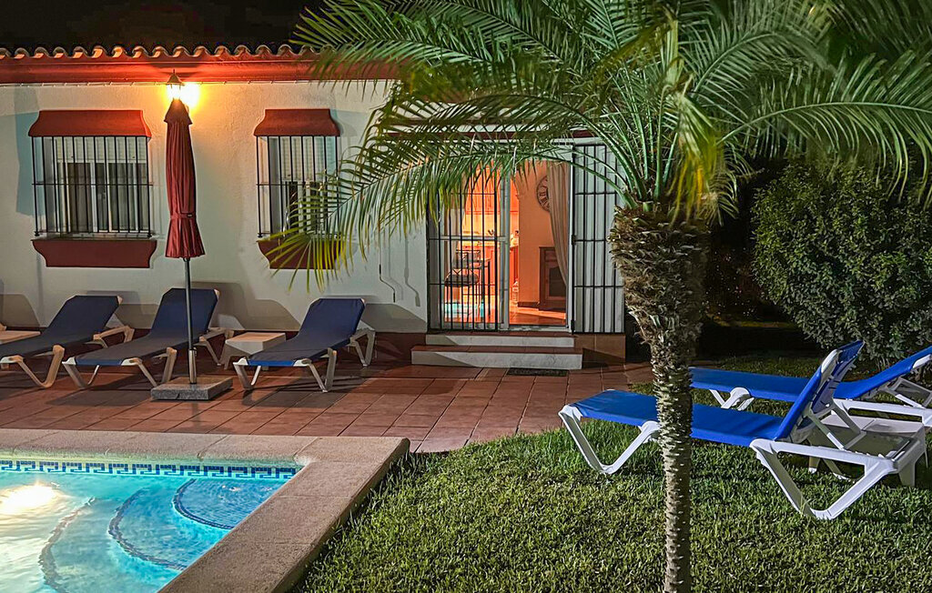 Bien-être à l'extérieur : Location de vacances disposant de chaises-longues et d'un ou plusieurs équipements tels que piscine extérieure, jacuzzi extérieur, lit à baldaquin de jardin etc...