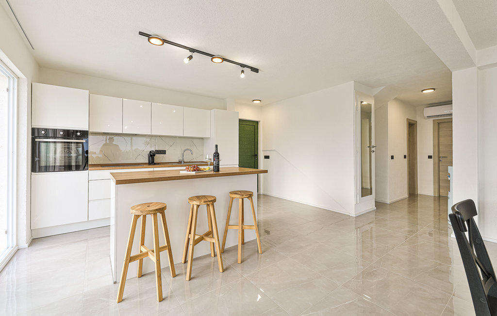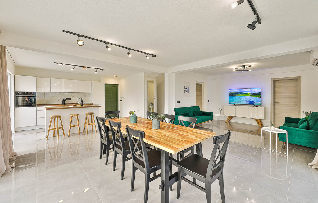 Cette maison accueillante vous accueille dans un cadre exceptionnel, d'où vous pourrez facilement rejoindre la plage à pied. Le salon confortable devient rapidement le centre des activités communes. Savourez les repas en commun avec une vue magnifique sur la mer grâce aux grandes fenêtres panoramiques, installez-vous confortablement après une journée de plage ou une excursion passionnante et regardez un film ensemble.
