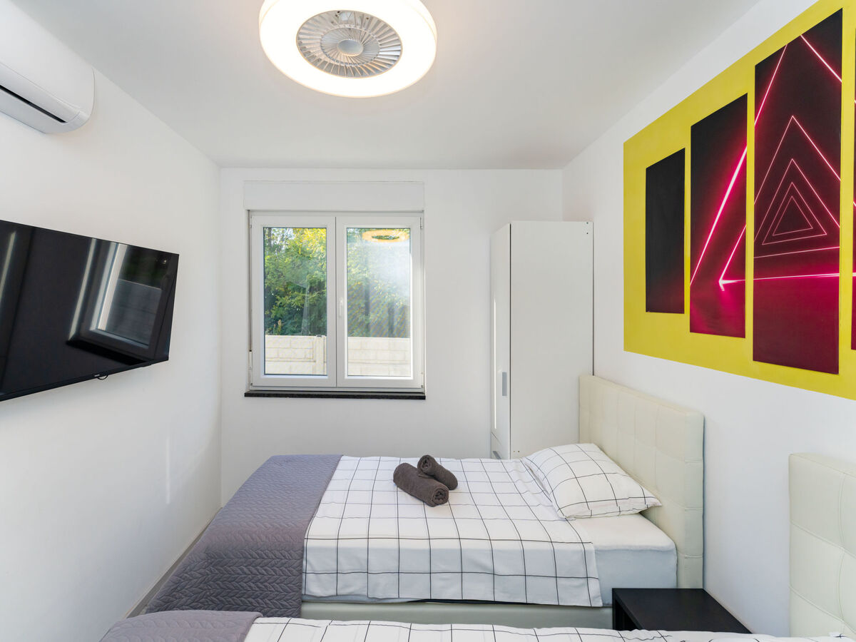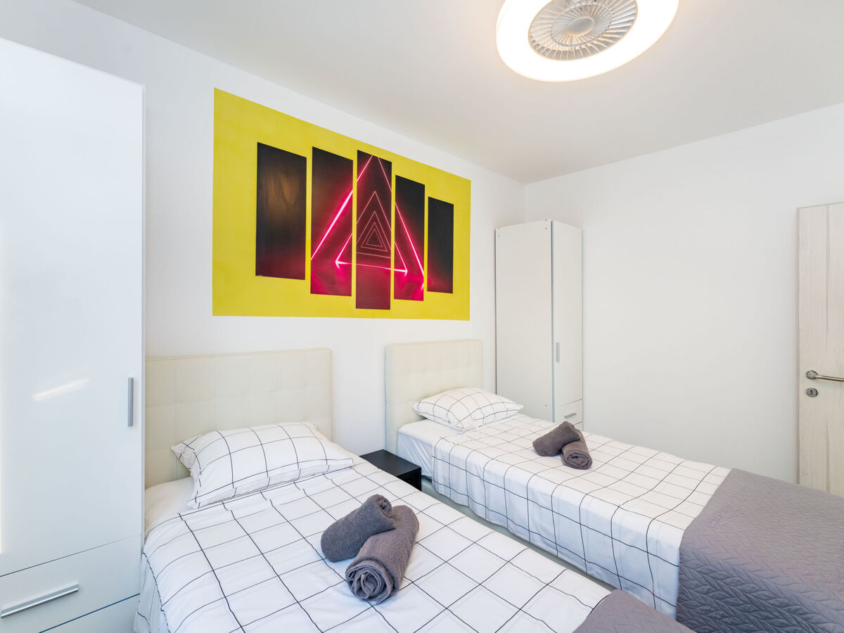 1 chambre avec 2 lits (90 cm, longueur 200 cm), TV (satellite) (écran plat), air-conditionné.