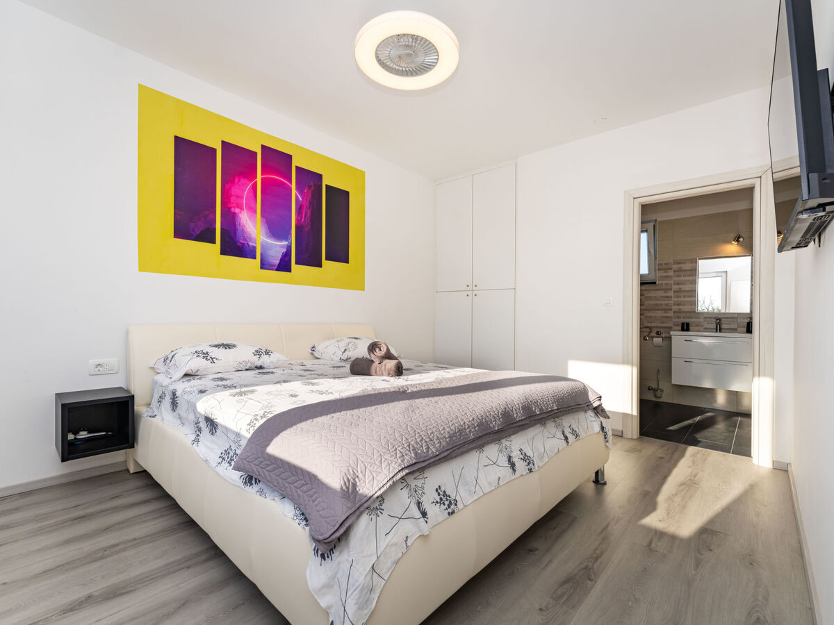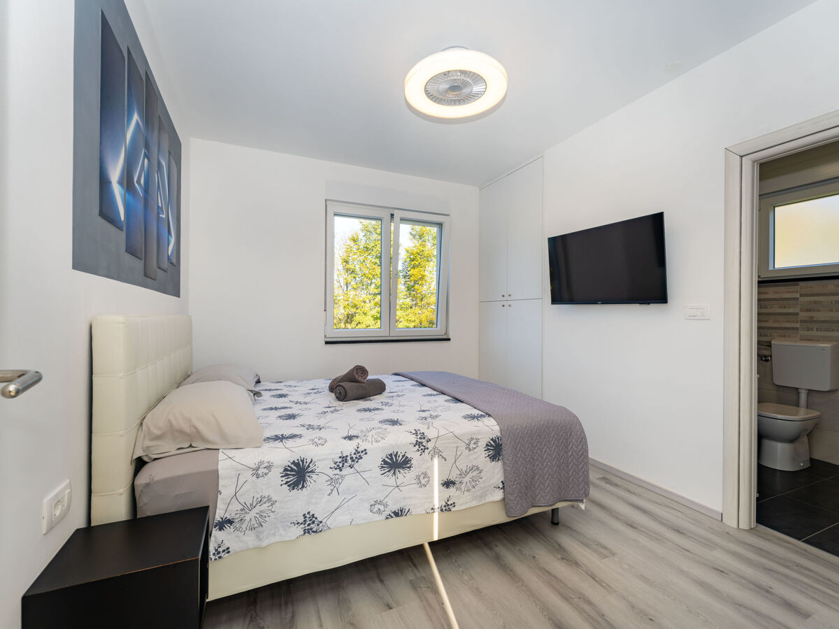 1 chambre avec 1 grand-lit (180 cm, longueur 200 cm), douche/WC et TV (satellite) (écran plat), air-conditionné.