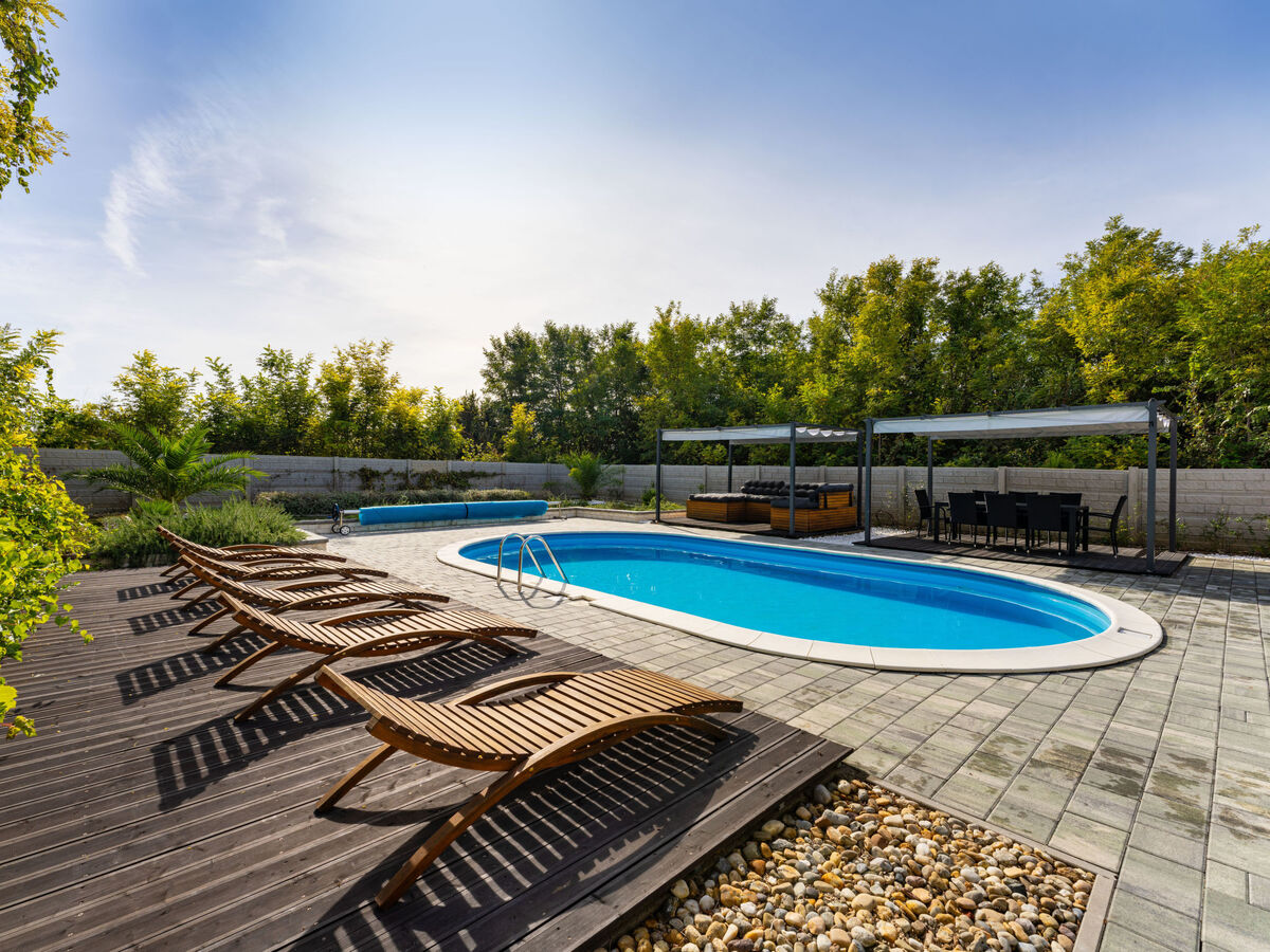 Douche extérieure, tonnelle (24 m2), meubles de jardin, barbecue, entretien de la piscine par le propriétaire/jardinier.