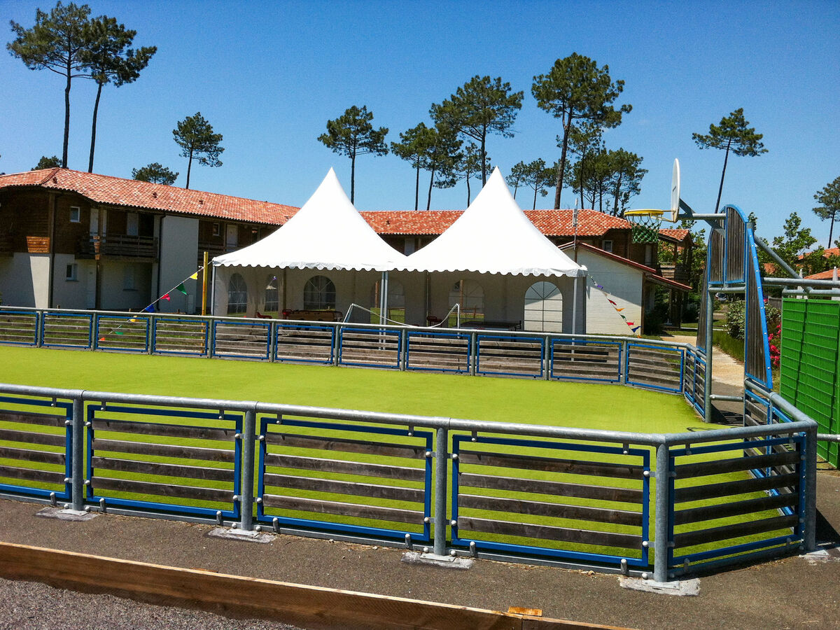 Complexe de vacances accueillant pour les enfants "Les Cottages du Lac", environné par les arbres.