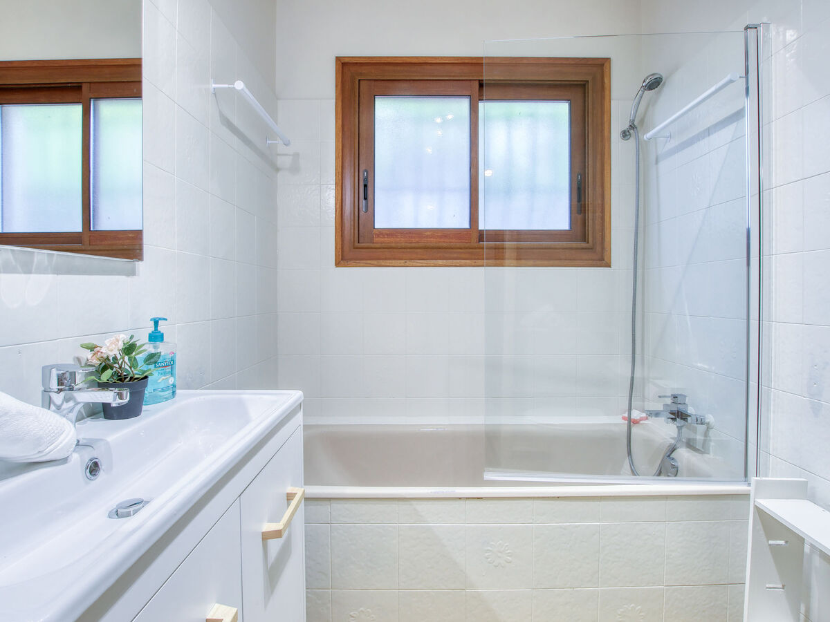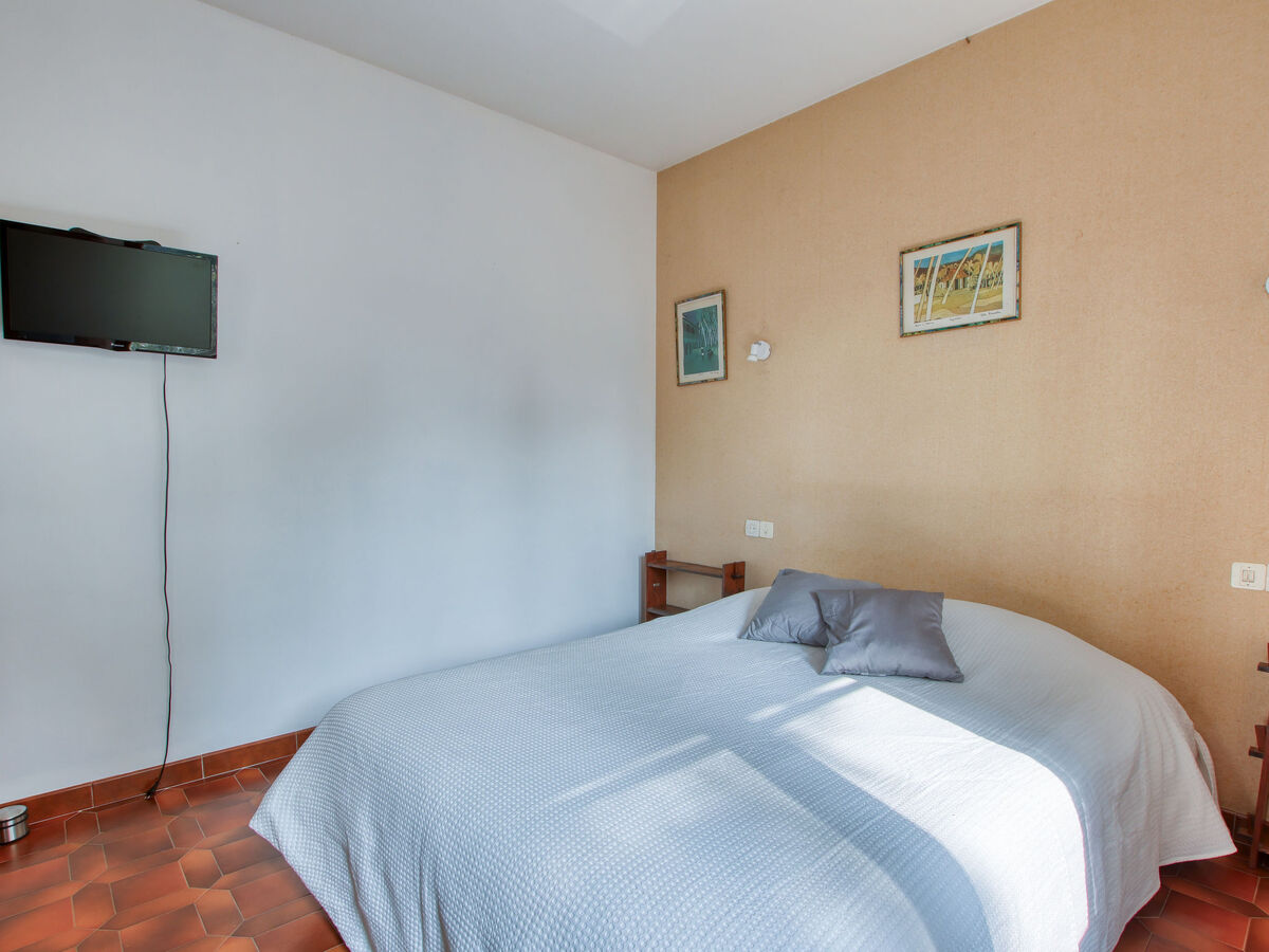 1 chambre avec 1 grand-lit (160 cm, longueur 200 cm), lavabo, douche et TV (écran plat), air-conditionné.