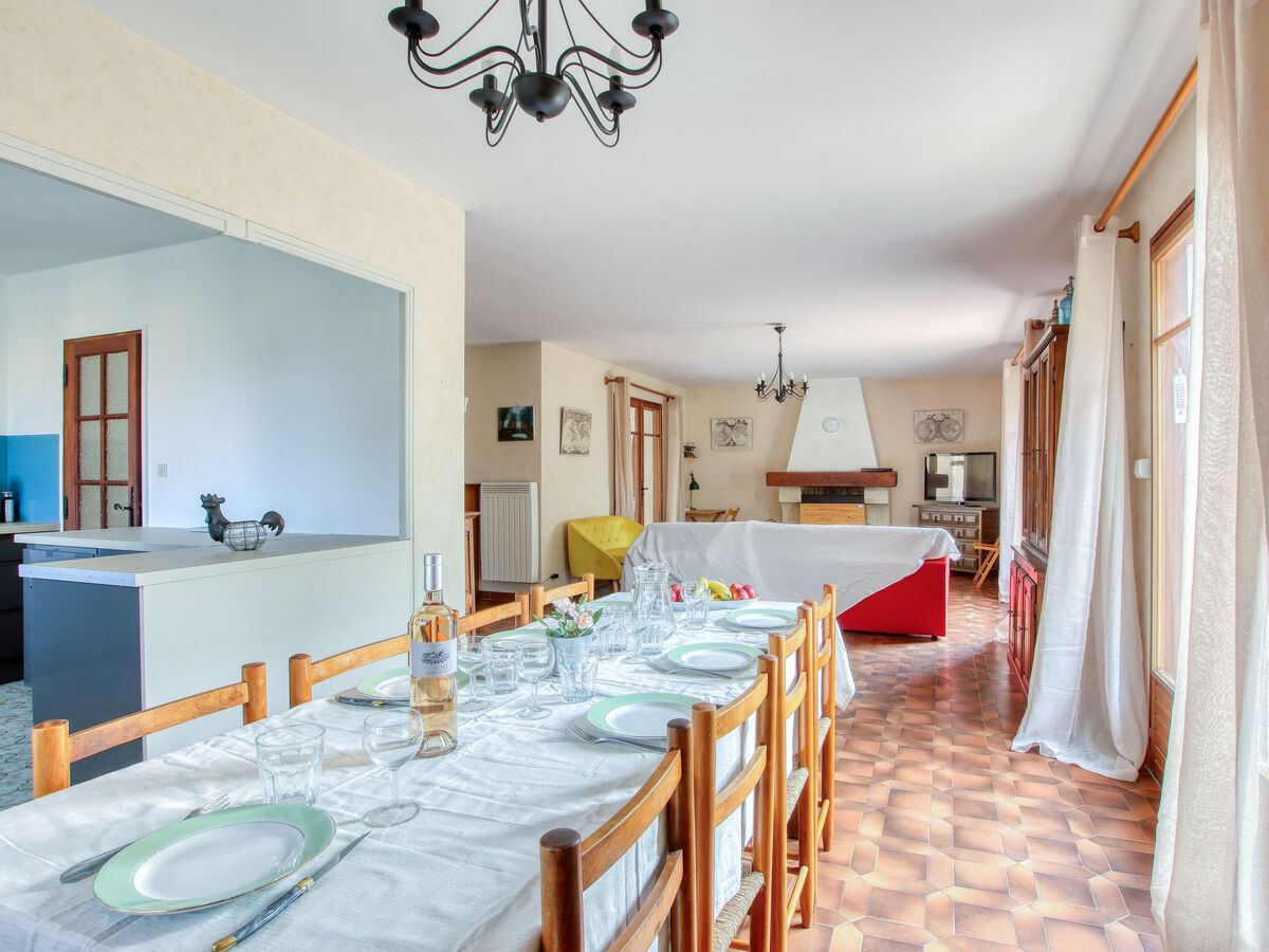 Séjour/salle à manger avec cheminée (uniquement à titre de décoration), TV (écran plat).