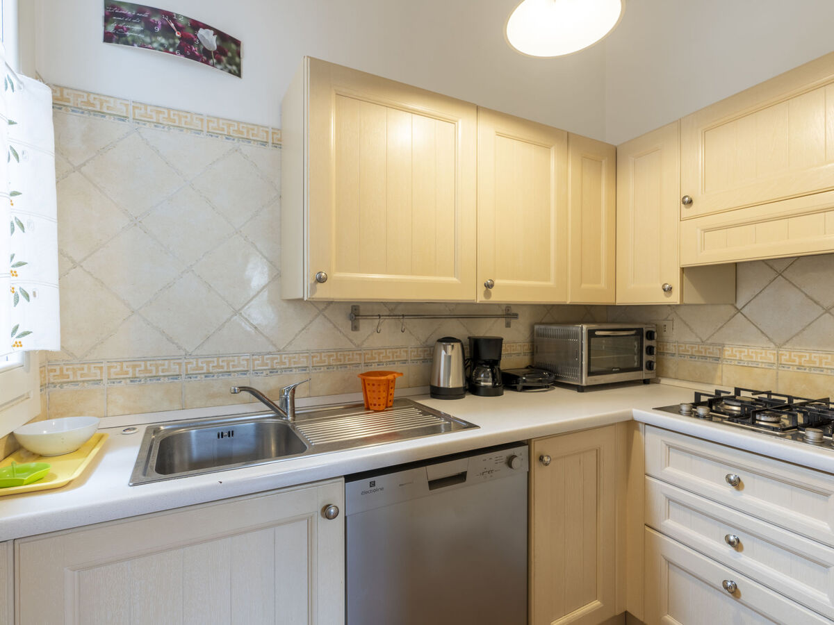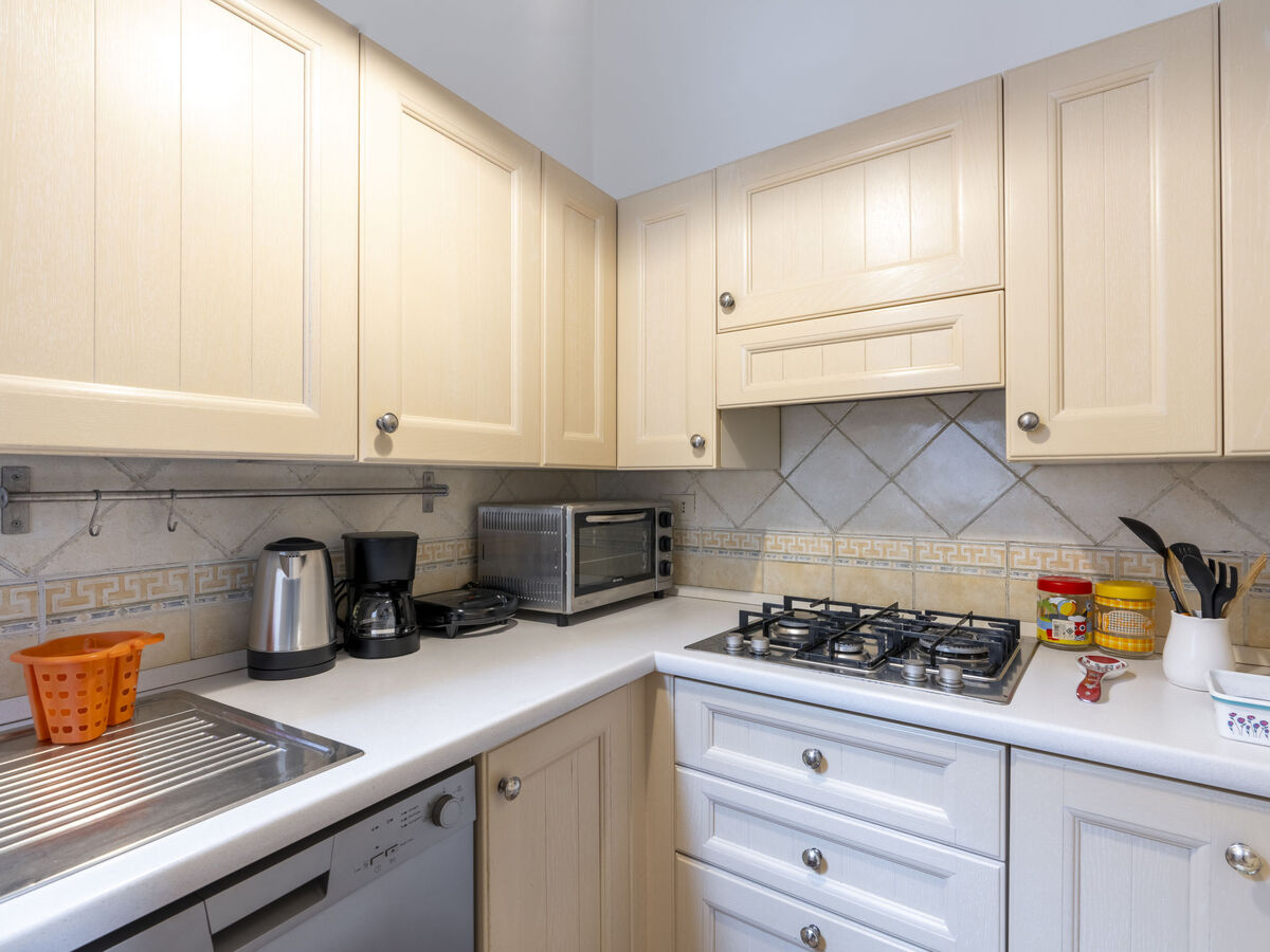 Coin cuisine (4 plaques de cuisson, four, lave-vaisselle, grille-pain, bouilloire électrique, cafetière électrique).