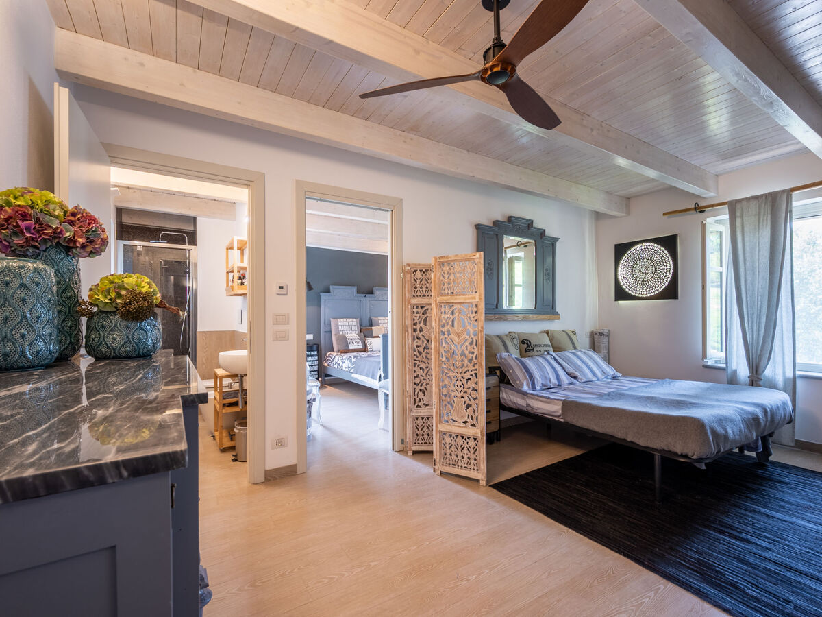 À l'étage supérieur: chambre avec passage avec 2 lits.