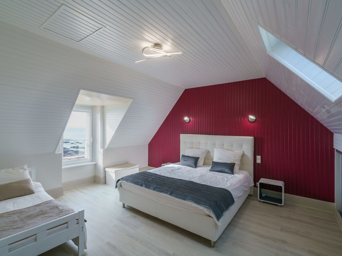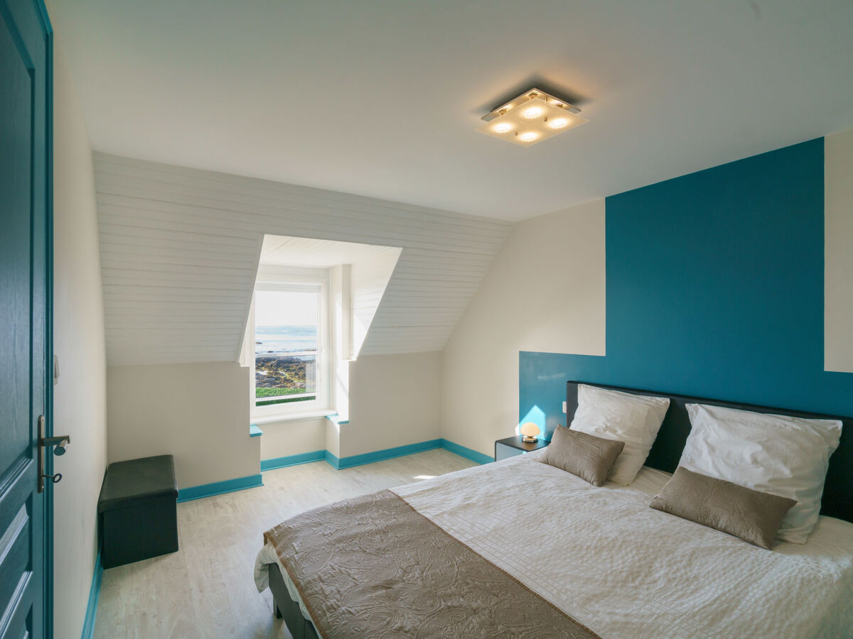 À l'étage supérieur: 1 chambre avec 1 grand-lit (160 cm, longueur 190 cm).