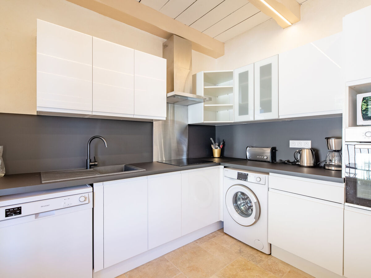 Cuisine ouverte (four, lave-vaisselle, 3 plaques à induction, grille-pain, bouilloire électrique, micro-ondes, congélateur, cafetière électrique).