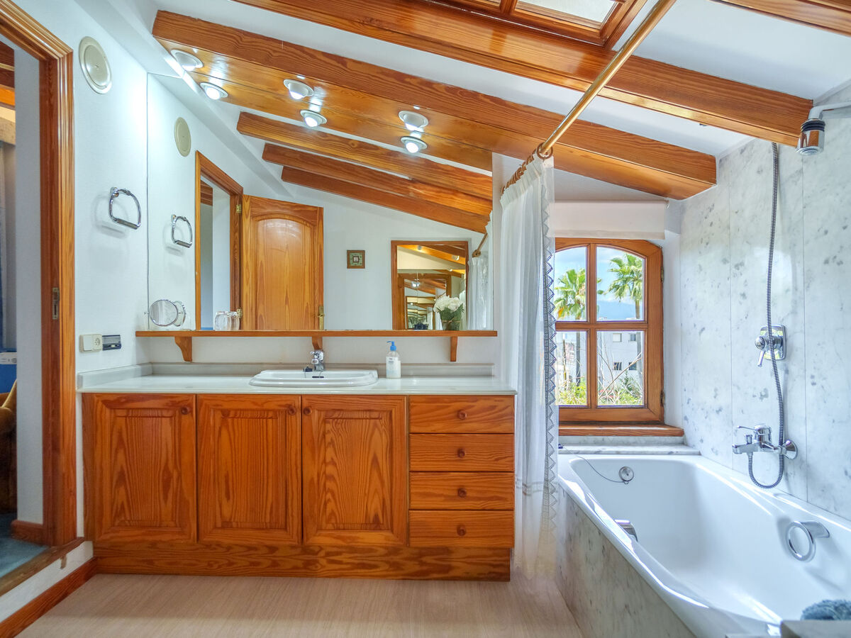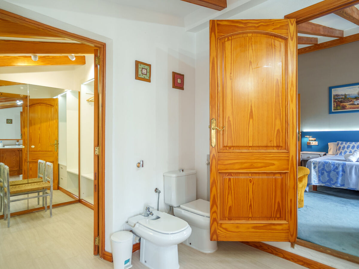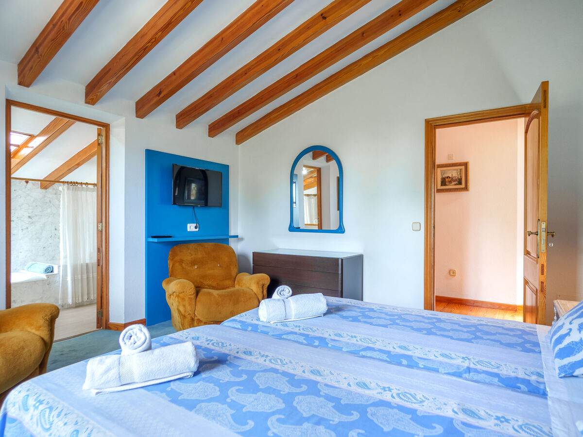 À l'étage supérieur: 3 grandes chambres doubles avec Dressing, chaque chambre avec: 2 lits (90 cm, longueur 180 cm), bain/WC, lavabo, Télévision numérique, écran plat, air-conditionné et chauffage à air chaud.