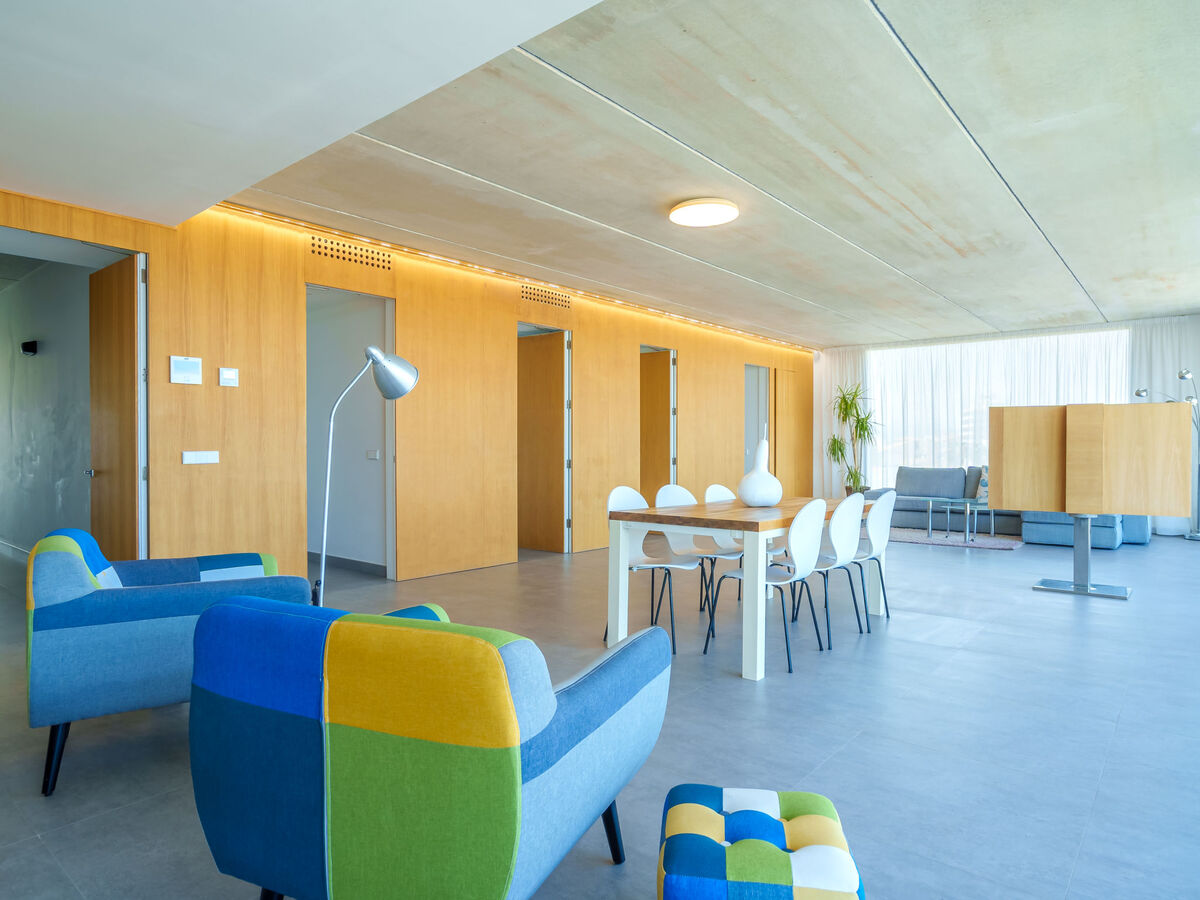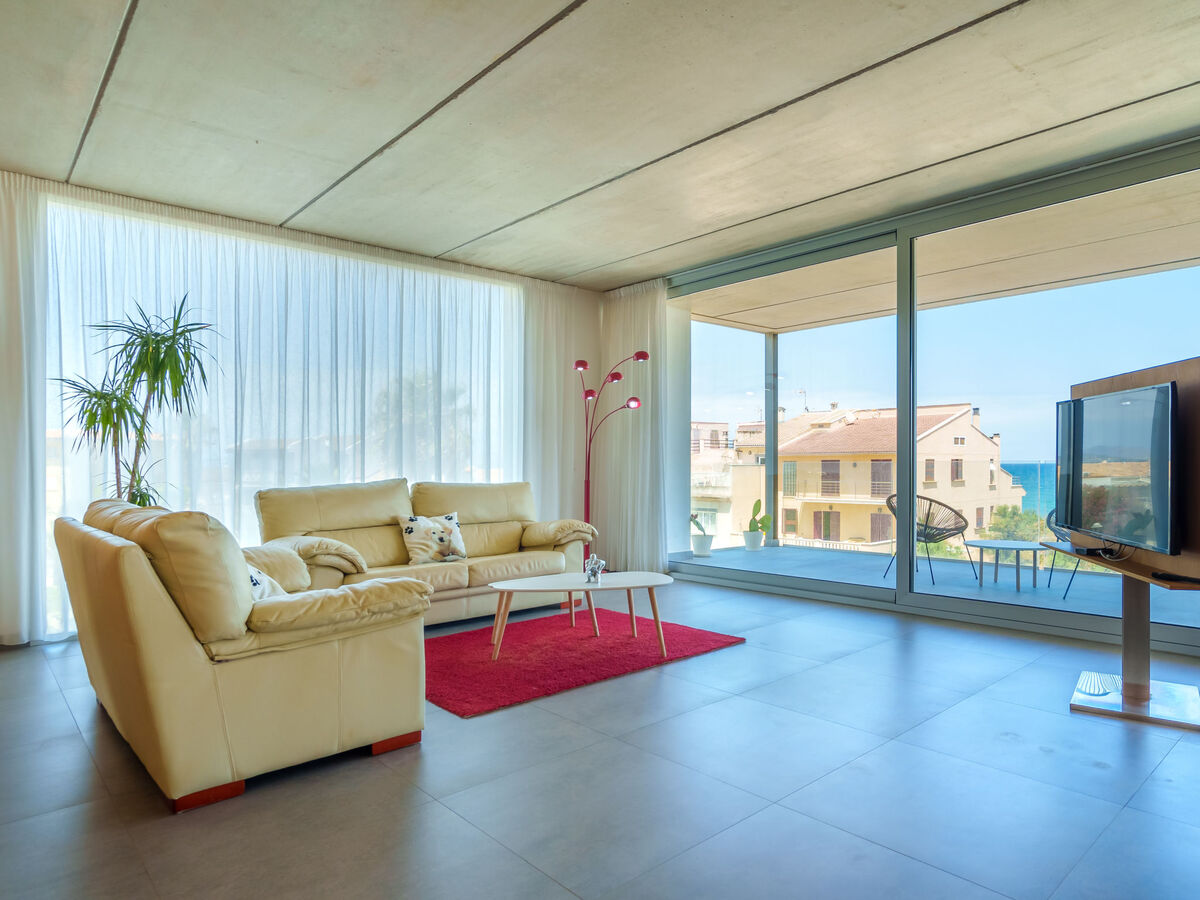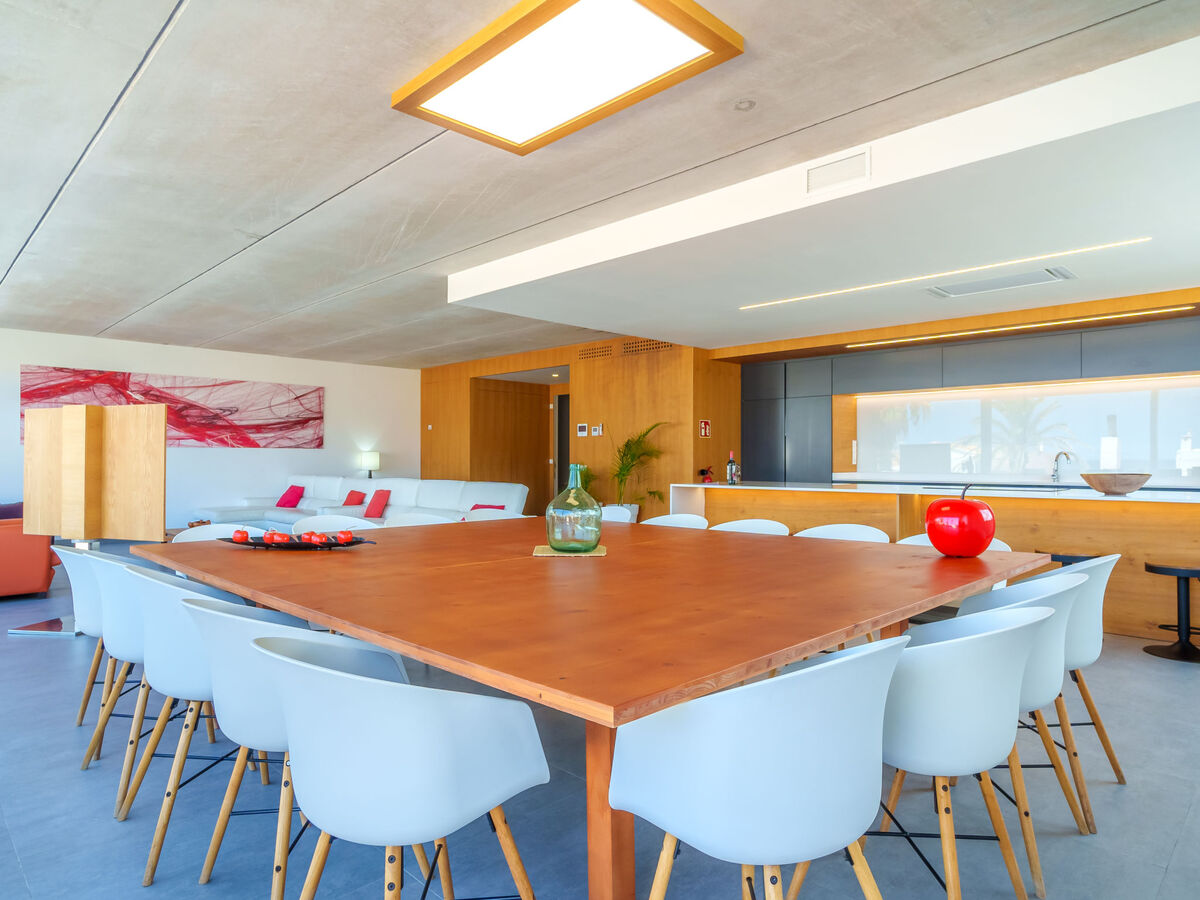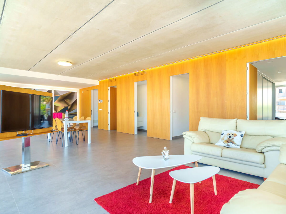 Spacieux et clair, aménagement fonctionnel et moderne: grand séjour/salle à manger avec baie vitrée avec table pour les repas, Télévision numérique, écran plat, air-conditionné et chauffage à air chaud.