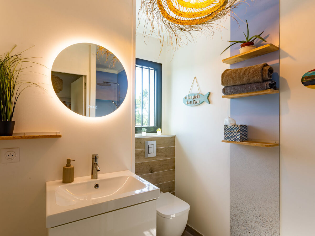 Douche extérieure, place de parking (pour 2 voitures) sur le terrain.