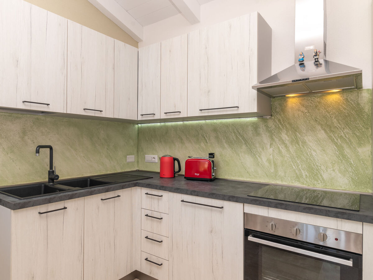 Coin cuisine (four, lave-vaisselle, 4 plaques à induction, grille-pain, bouilloire électrique, cafetière électrique).
