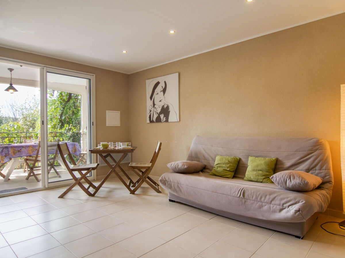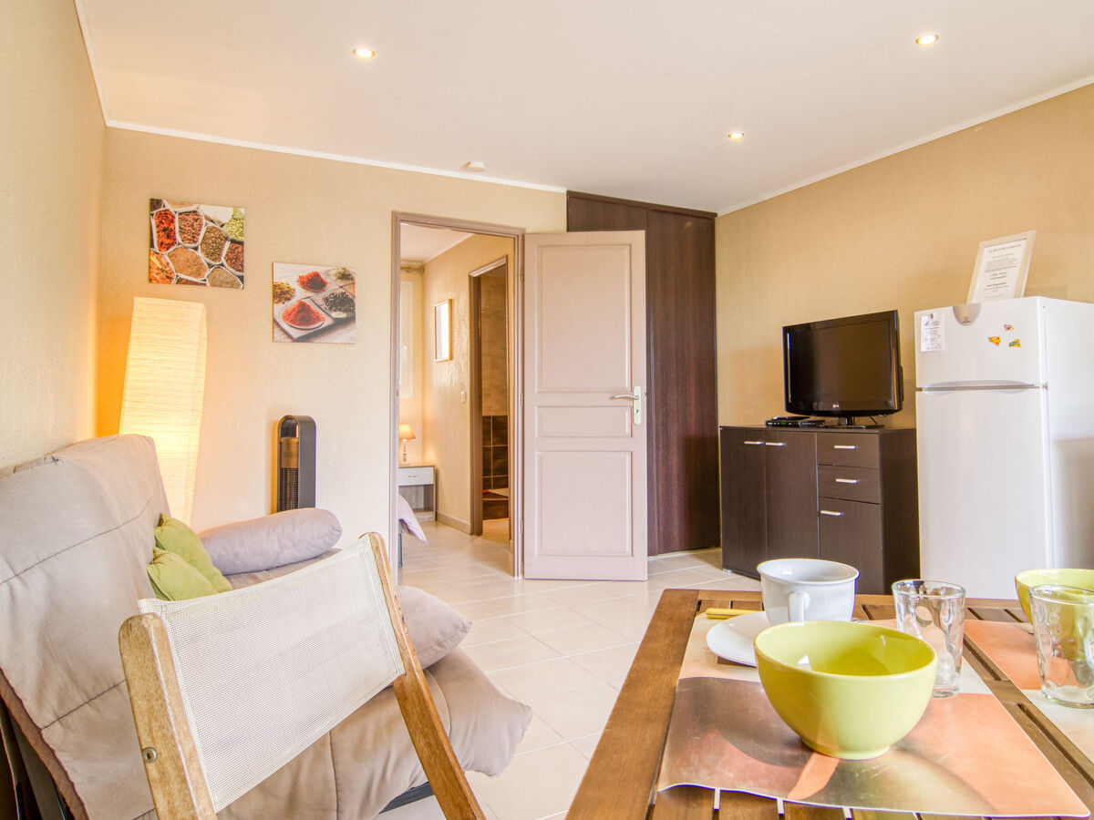 Aménagement confortable et agréable: séjour avec 1 divan-lit double (140 cm, longueur 190 cm), TV.
