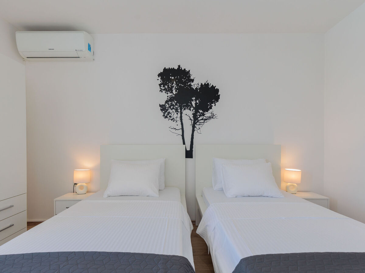 1 chambre avec 2 lits (90 cm, longueur 200 cm), air-conditionné.