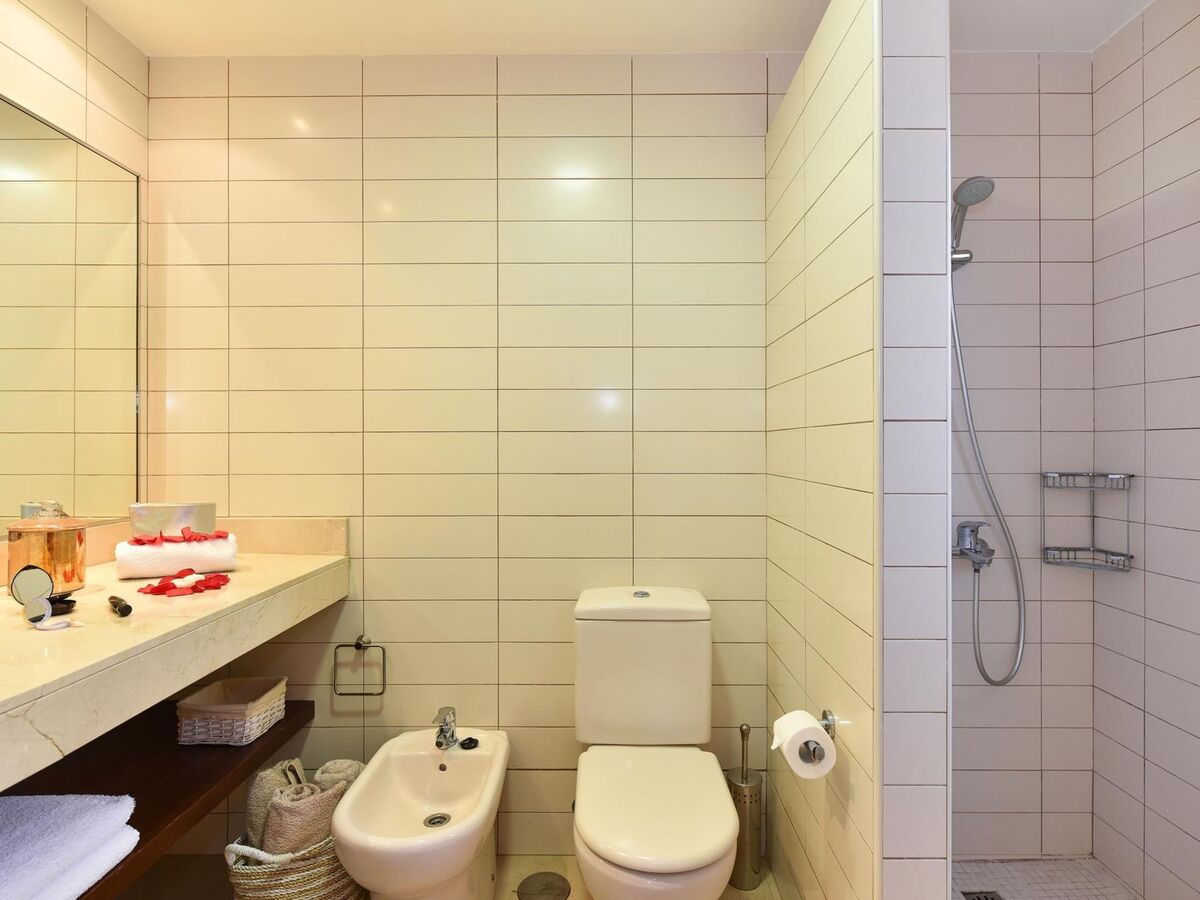 1 chambre avec 1 grand-lit, douche/WC et air-conditionné.