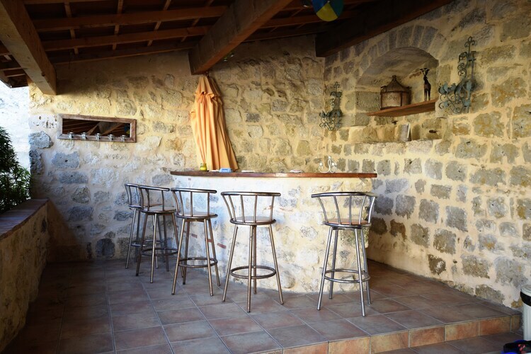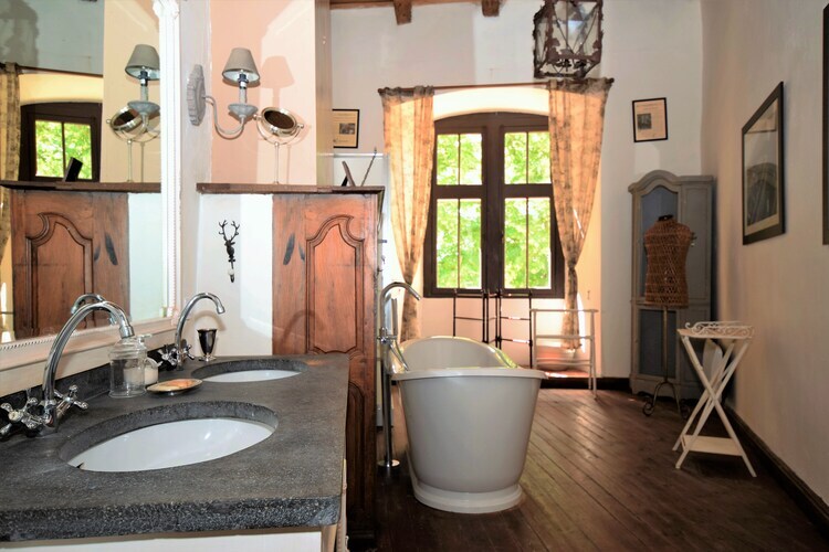 Rez-de-chaussée: (cuisine(plaque de cuisson, cafetière/percolateur, four/micro-onde combinés, lave-vaisselle , combinaison réfrigérateur/congélateur, lave-linge ), salle à manger-salon(TV, cheminée, installation stéréo), salle commune(bar)) Au 1er étage: (chambre(lit simple, lit double grande taille), chambre(2x lit simple, 2x lit double, cheminée), chambre(2x lit simple, lit double, cheminée, lit d'enfant), salle de bains(baignoire, douche, lavabo, WC), salle de bains(baignoire-douche, lavabo, WC), palier(Lit double ou 2 x lit simple)) Annexe Rez-de-chaussée: (Salle de séjour(2x installation stéréo), cuisine(plaque de cuisson, cafetière/percolateur, four, micro ondes, lave-vaisselle , combinaison réfrigérateur/congélateur), cuisine(table, plaque de cuisson, cafetière/percolateur, four, lave-vaisselle , combinaison réfrigérateur/congélateur), salle à manger-salon(TV, table, cheminée décorative, installation stéréo), chambre(lit simple, lit double grande taille), chambre(Lit superposé, Lit double ou 2 x lit simple), salle de bains(douche, WC, lave-linge ), salle de bains(douche, lavabo, WC), bar, cour(privé), 2x terrasse(couverte), transats) Annexe 1er étage: (chambre(2x lit gigogne simple, lit double grande taille), chambre avec salle de bains(lit double grande taille, baignoire, lavabo, WC, terrasse)) réceptions, cour, jardin, mobilier de jardin, transats, barbecue, parking, piscine(privé), chaise haute