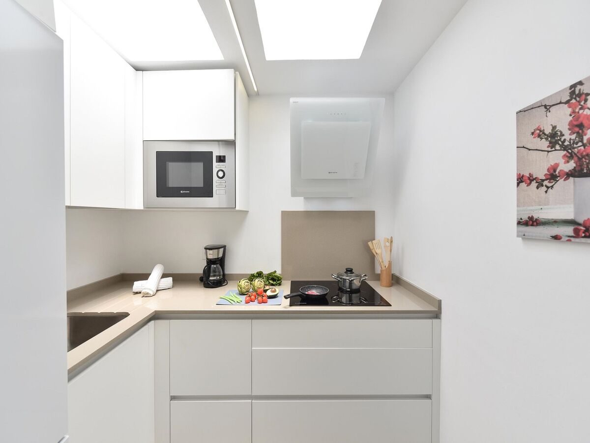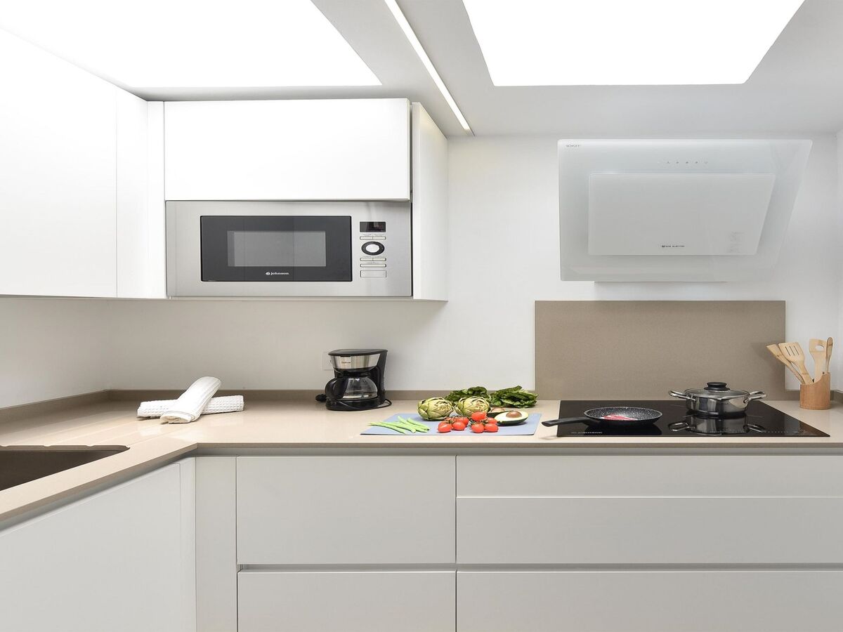 Cuisine (2 plaques vitrocéramiques, grille-pain, bouilloire électrique, micro-ondes, congélateur, cafetière électrique).