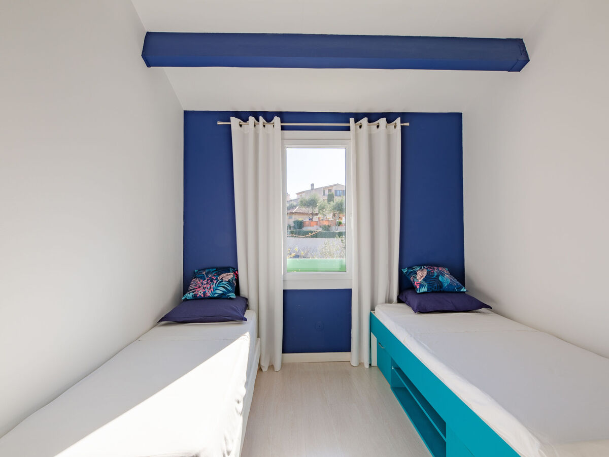 À l'étage supérieur: 1 chambre avec 2 lits (70 cm, longueur 190 cm).