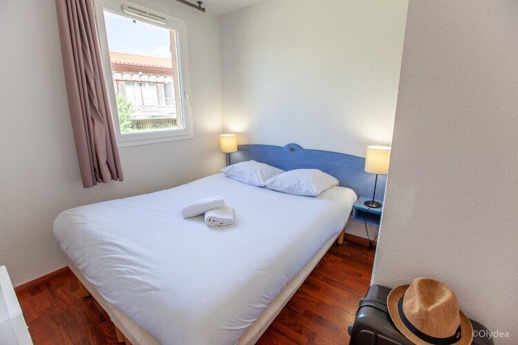 coin cuisine(foyer(vitrocéramique), bouilloire, cafetière/percolateur, micro ondes, lave-vaisselle , réfrigérateur), salle à manger-salon(canapé-lit double(140 x 190 cm), TV, table), chambre(2x lit simple(80 x 190 cm)), salle de bains(douche, WC), balcon ou terrasse, climatisation, mobilier de jardin, piscine(partagé avec d'autres clients, extérieur, ouvert de 1/2 Avr jusqu'à (inclus) Sept), chaise haute, baby crib(free)