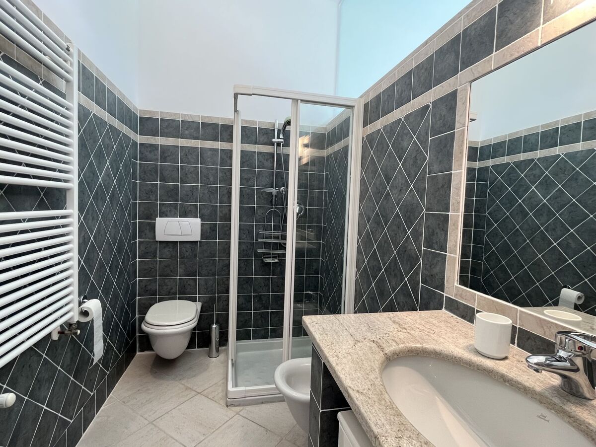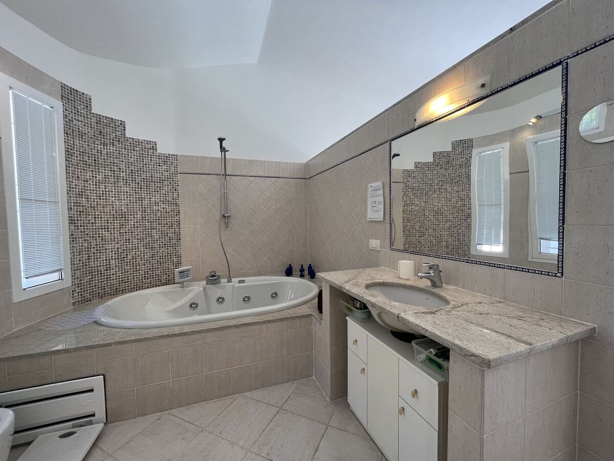1 chambre avec 2 lits (90 cm, longueur 200 cm), bain/bidet/WC, bain à remous et avec baignoire d'angle.