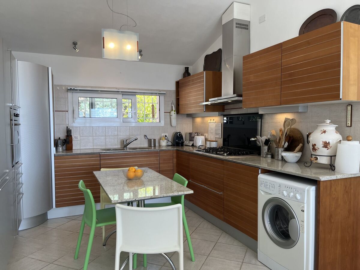 Cuisine ouverte (four, lave-vaisselle, Poêle à gaz, 4 feux, grille-pain, bouilloire électrique, congélateur, cafetière électrique) avec table pour les repas, TV (satellite).