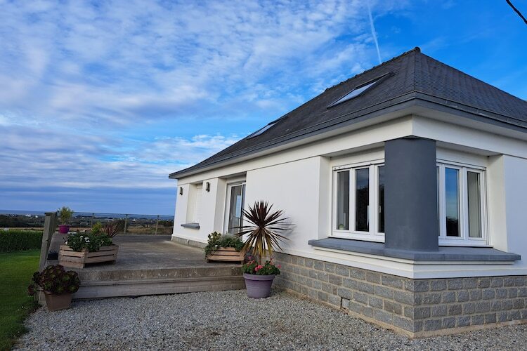 La vue sur la mer est omniprésente dans cette maison de vacances aménagée avec goût dans un environnement rural. Avec un espace de vie spacieux, 2 chambres à coucher et 2 salles de bains, ce logement confortable est idéal pour deux couples d'amis qui souhaitent disposer de suffisamment d'intimité. Sur la terrasse de 80 m² qui fait le tour de la maison et qui est équipée de meubles confortables en longe, ils profitent à toute heure de la journée d'une vue fantastique et dégagée jusqu'à la mer. Les magnifiques plages de Plouescat (Keremma, Porsmeur) et la plage de sable blanc des Amiets à Cléder se trouvent pratiquement à la même distance (environ 4,5 km). Un emplacement idéal pour vos vacances en Bretagne !