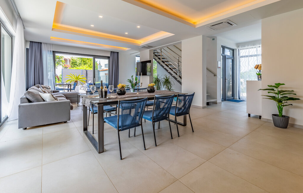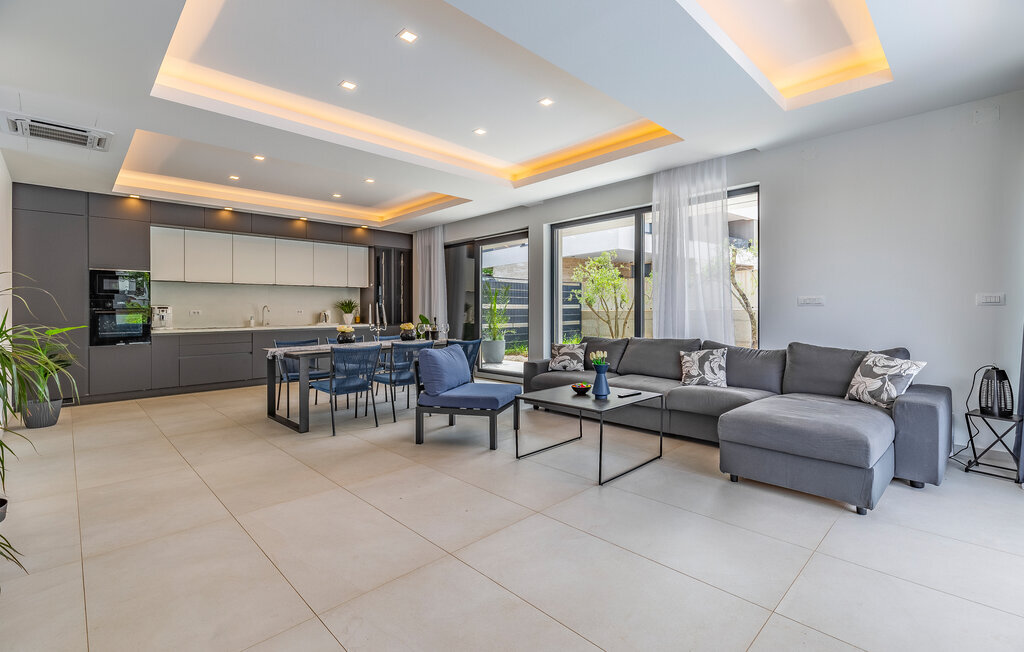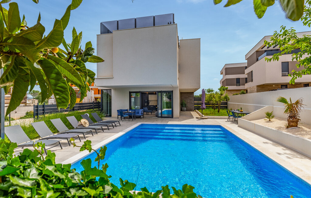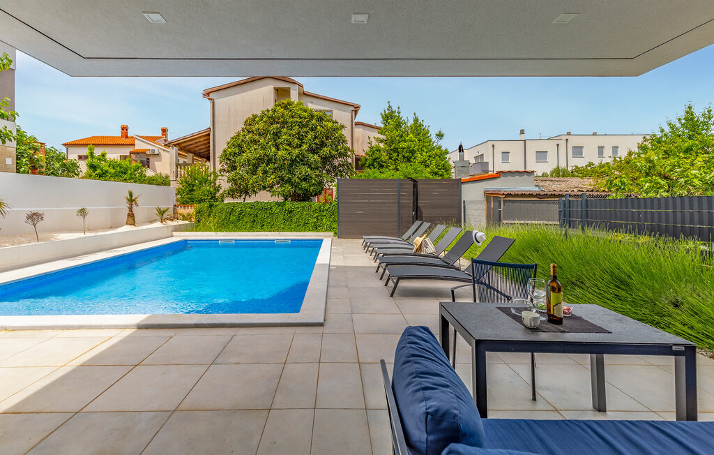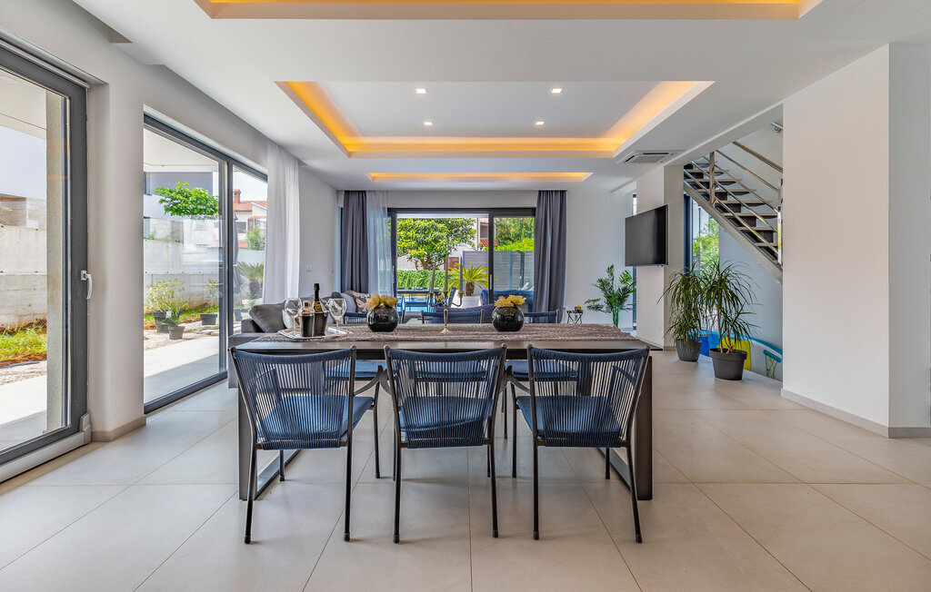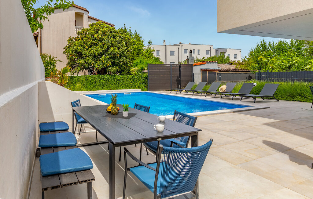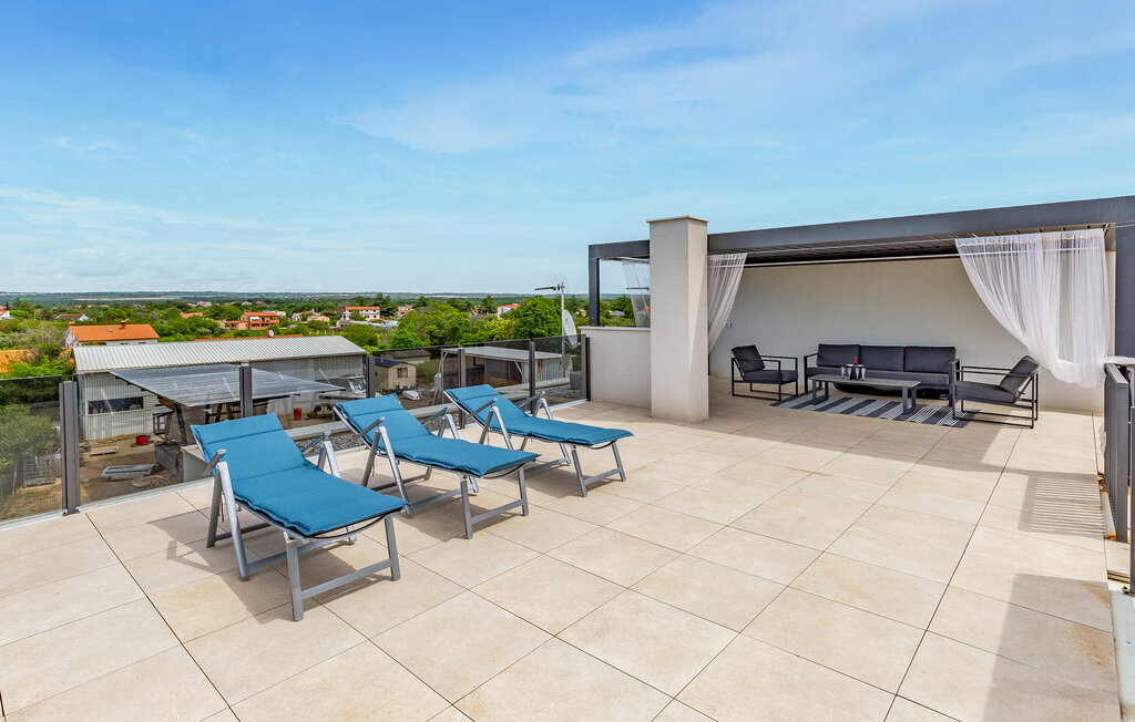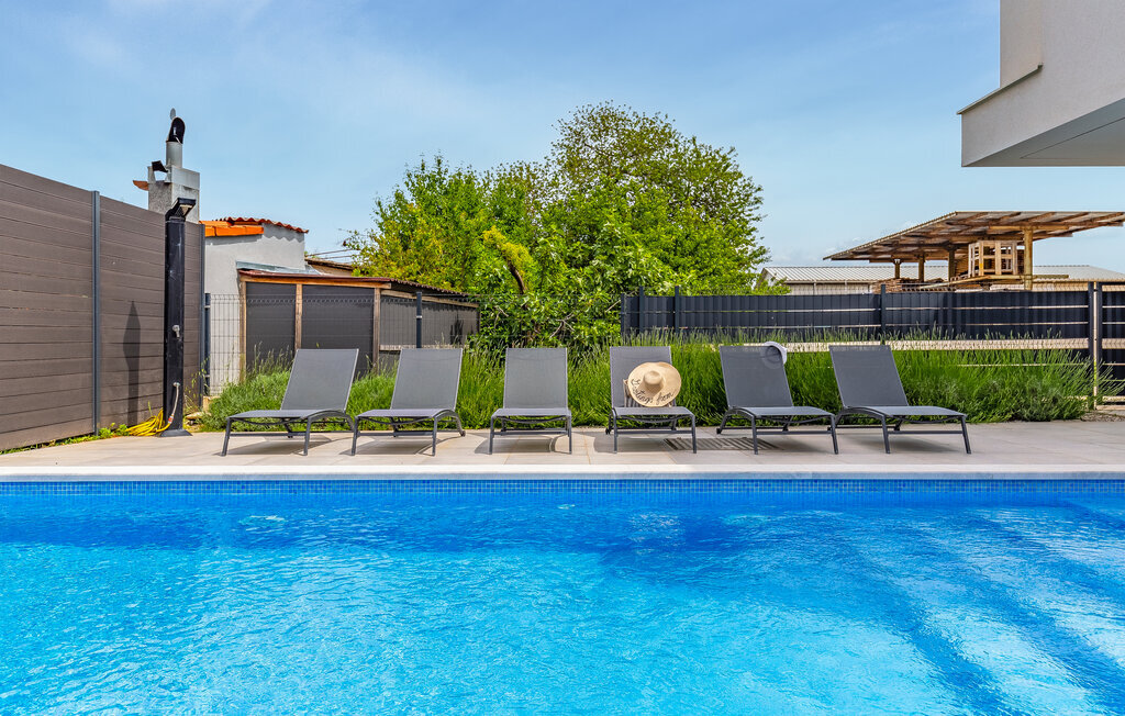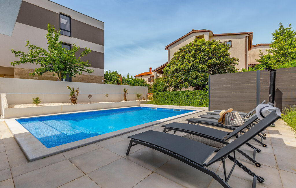 Cette belle maison de vacances de bon goût vous accueille non loin du centre de Pula. Faites-en votre maison et sentez-vous à l'aise dans cette maison de haute qualité et confortablement aménagée. Le mélange d'éléments clairs et sombres crée une expérience de vie fantastique qui vous permet de vous détendre facilement. Décidez vous-même si vous voulez vous baigner dans la piscine ou prendre un bain de soleil sur la terrasse du toit.