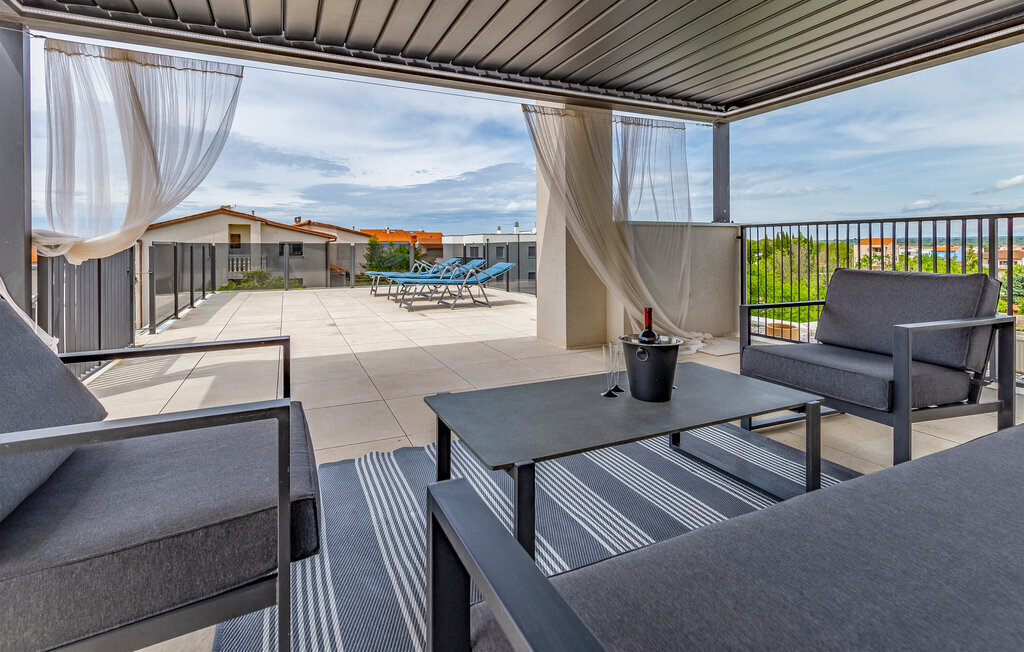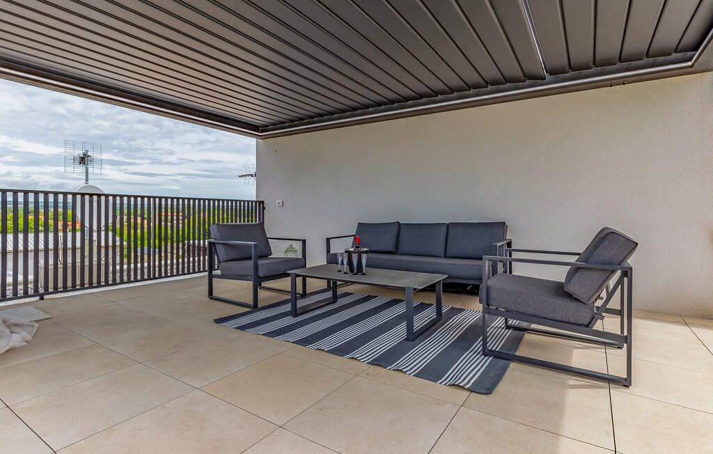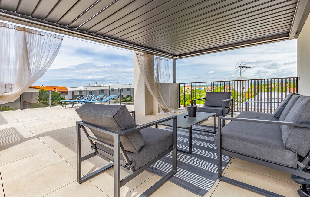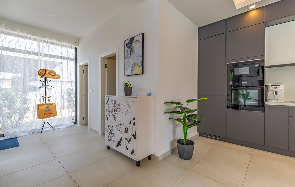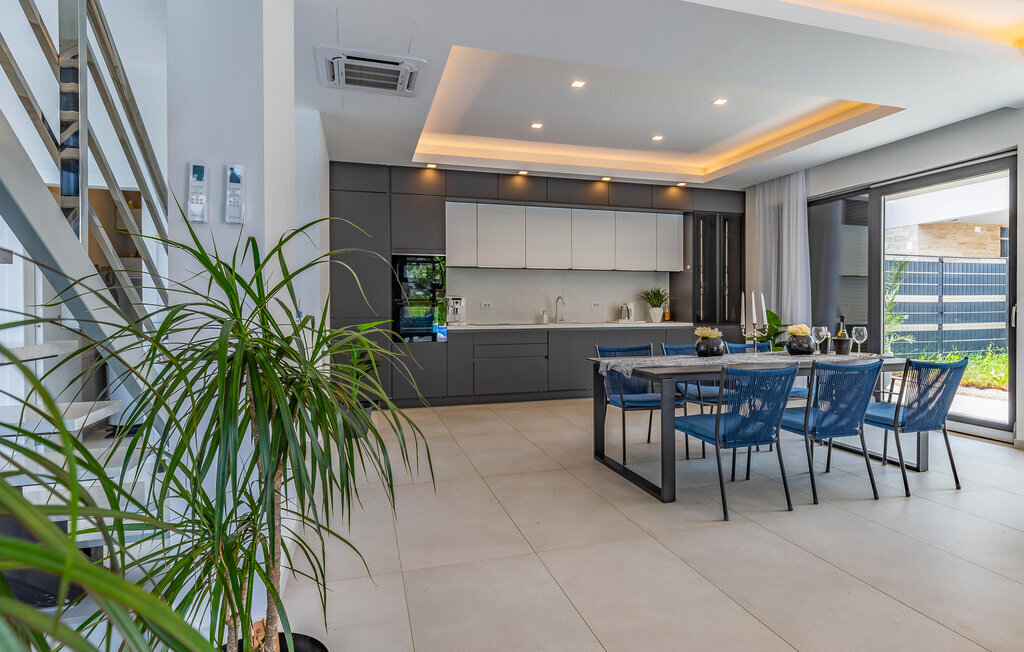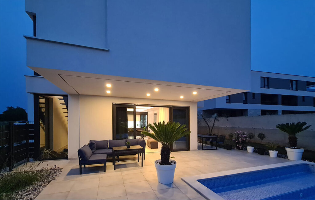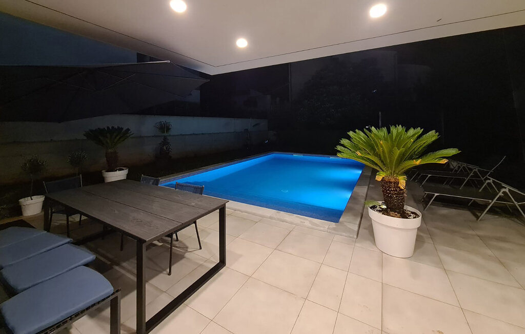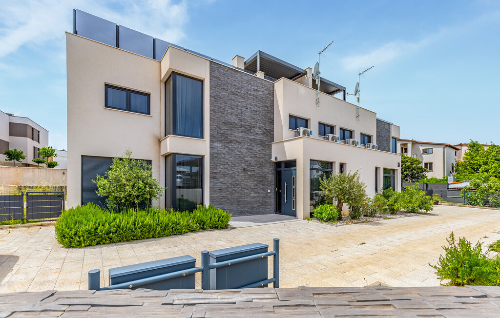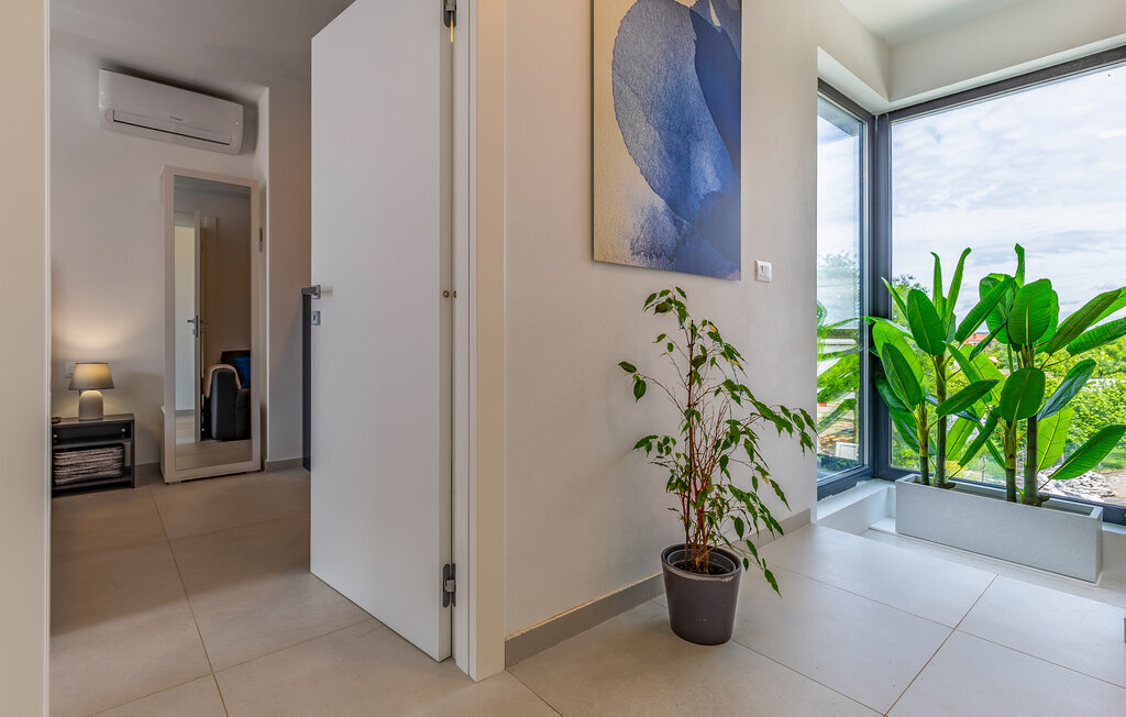 Cette belle maison de vacances de bon goût vous accueille non loin du centre de Pula. Faites-en votre maison et sentez-vous à l'aise dans cette maison de haute qualité et confortablement aménagée. Le mélange d'éléments clairs et sombres crée une expérience de vie fantastique qui vous permet de vous détendre facilement. Décidez vous-même si vous voulez vous baigner dans la piscine ou prendre un bain de soleil sur la terrasse du toit.