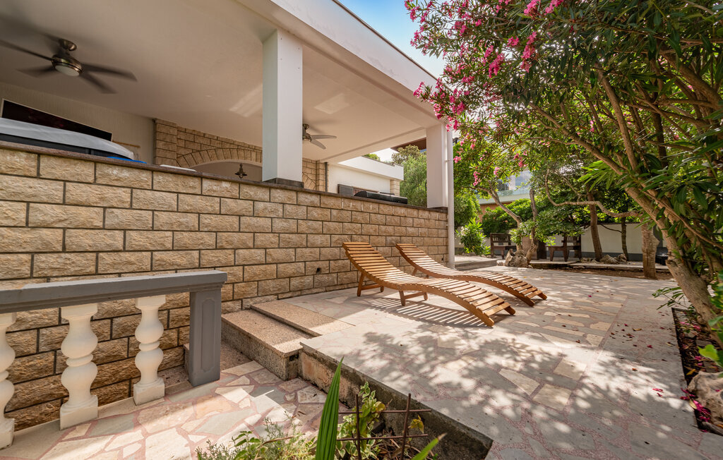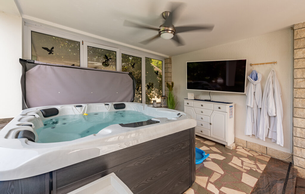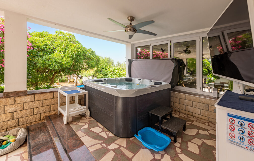 Bien-être à l'extérieur : Location de vacances disposant de chaises-longues et d'un ou plusieurs équipements tels que piscine extérieure, jacuzzi extérieur, lit à baldaquin de jardin etc...