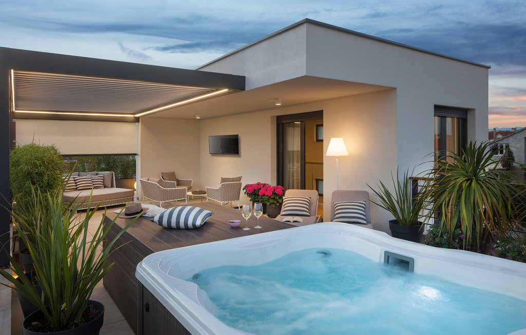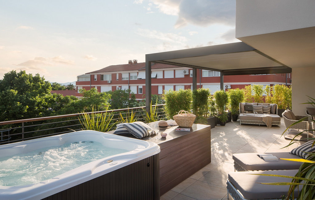 L'élégante villa Tereza vous accueille au cœur de Zadar et vous propose des chambres à coucher spacieuses et inondées de lumière ainsi que des espaces de vie élégants. La cuisine entièrement équipée et la salle à manger vous invitent à passer des moments conviviaux, tandis que le jardin avec piscine et espace barbecue est idéal pour passer des vacances relaxantes. Le point fort est la terrasse sur le toit avec jacuzzi, qui vous offre une vue fantastique sur la ville, idéale pour terminer la journée en toute décontraction.