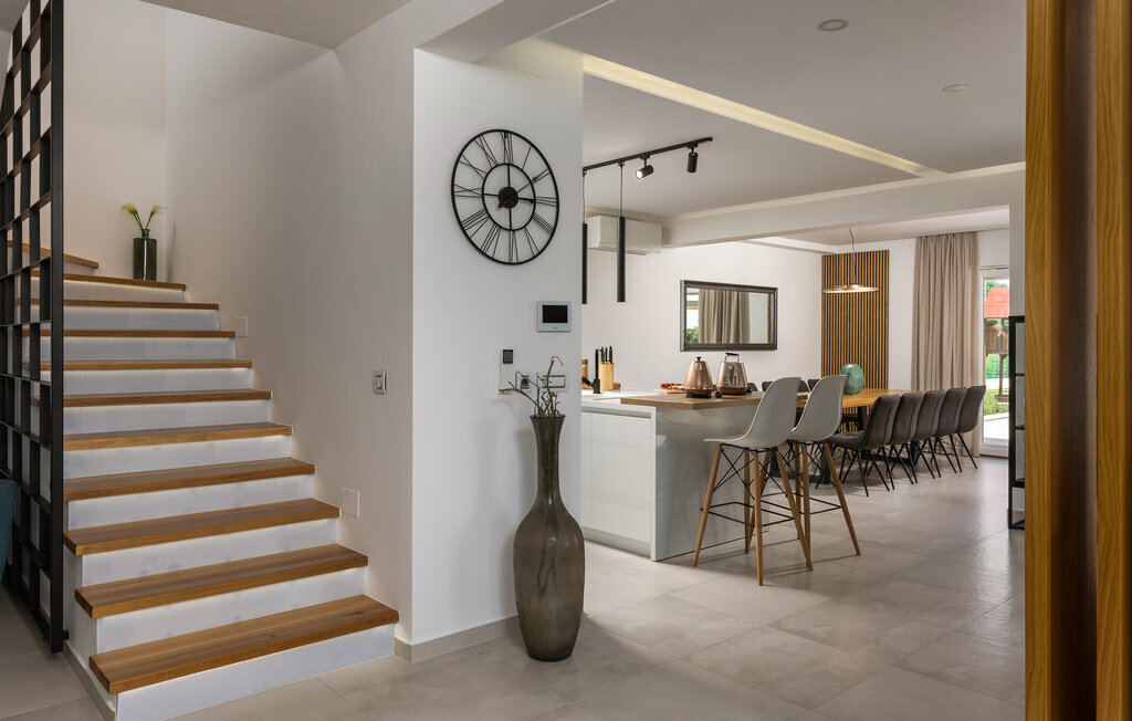 L'élégante Villa Lumi, située à quelques kilomètres de Zadar, vous offre tout ce dont vous avez besoin pour passer des vacances reposantes en famille. Le rez-de-chaussée au design moderne réunit une cuisine entièrement équipée, un salon confortable et une salle à manger. Réunissez-vous ici en famille pour cuisiner, manger et jouer. Une salle de divertissement avec billard, baby-foot, fléchettes et jeux vidéo permet aux petits et aux grands de s'amuser. Les chambres à coucher spacieuses à l'étage vous invitent à vous détendre.