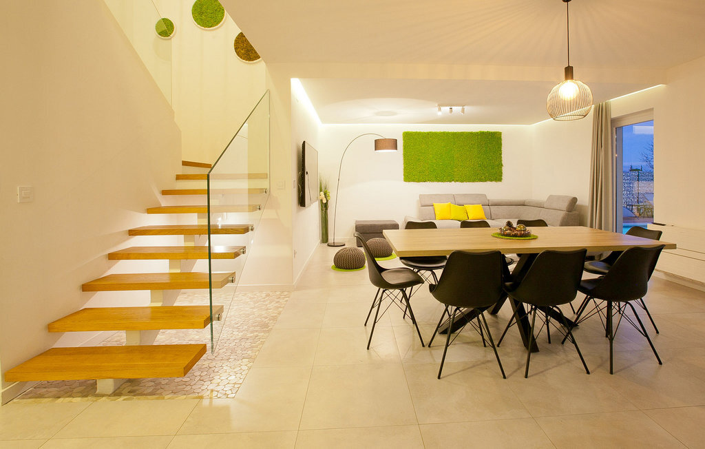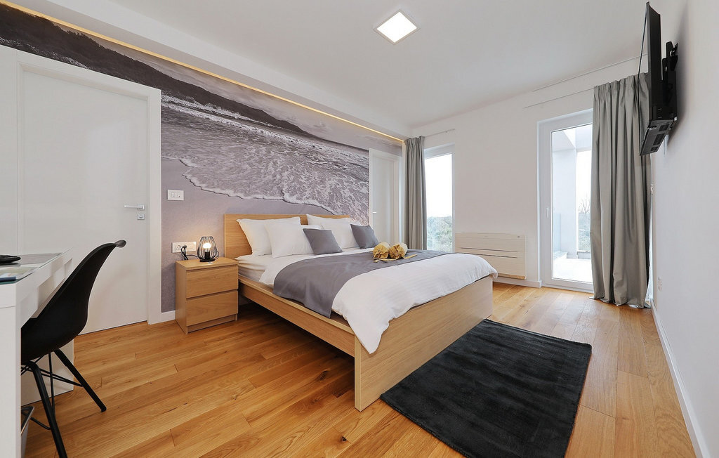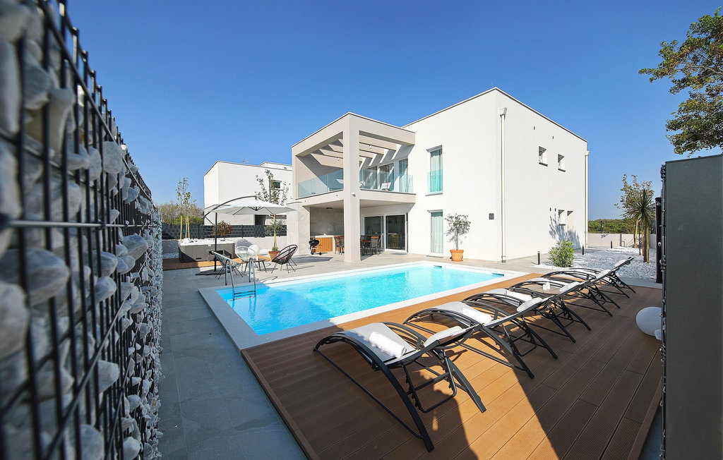 L'élégante Villa North à Zaton vous offre le cadre parfait pour des vacances reposantes en famille ou entre amis. L'architecture moderne et l'aménagement de bon goût créent une atmosphère agréable dans laquelle vous vous sentirez immédiatement à l'aise. L'espace de vie ouvert avec une cuisine entièrement équipée et une table à manger spacieuse vous invite à partager vos repas. Les chambres à coucher à l'étage supérieur vous promettent le repos nocturne et vous permettent d'entamer vos journées de vacances respectives en toute décontraction.