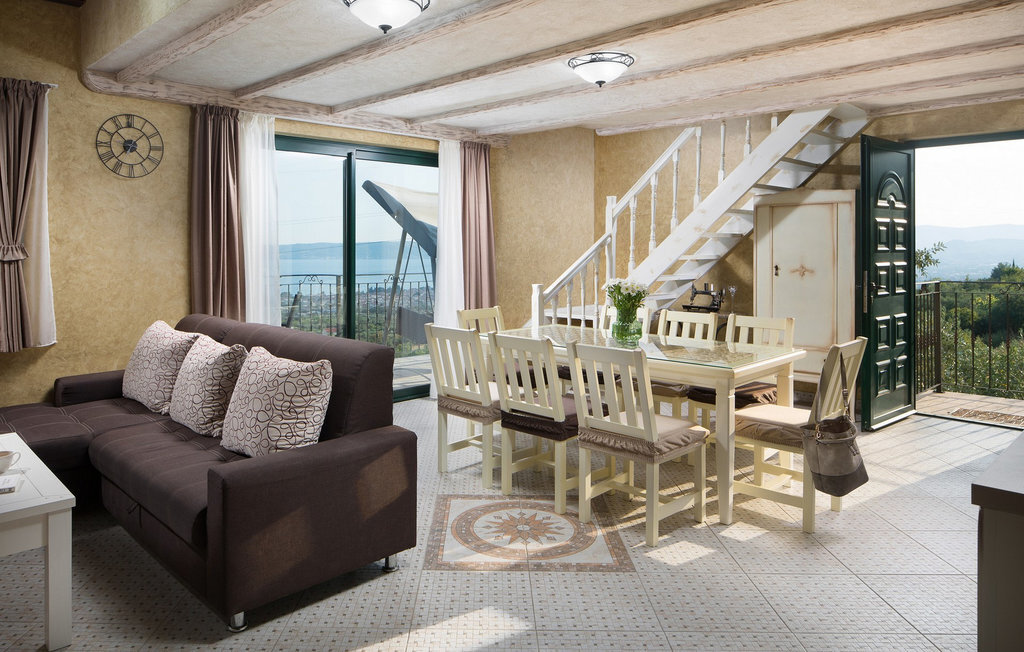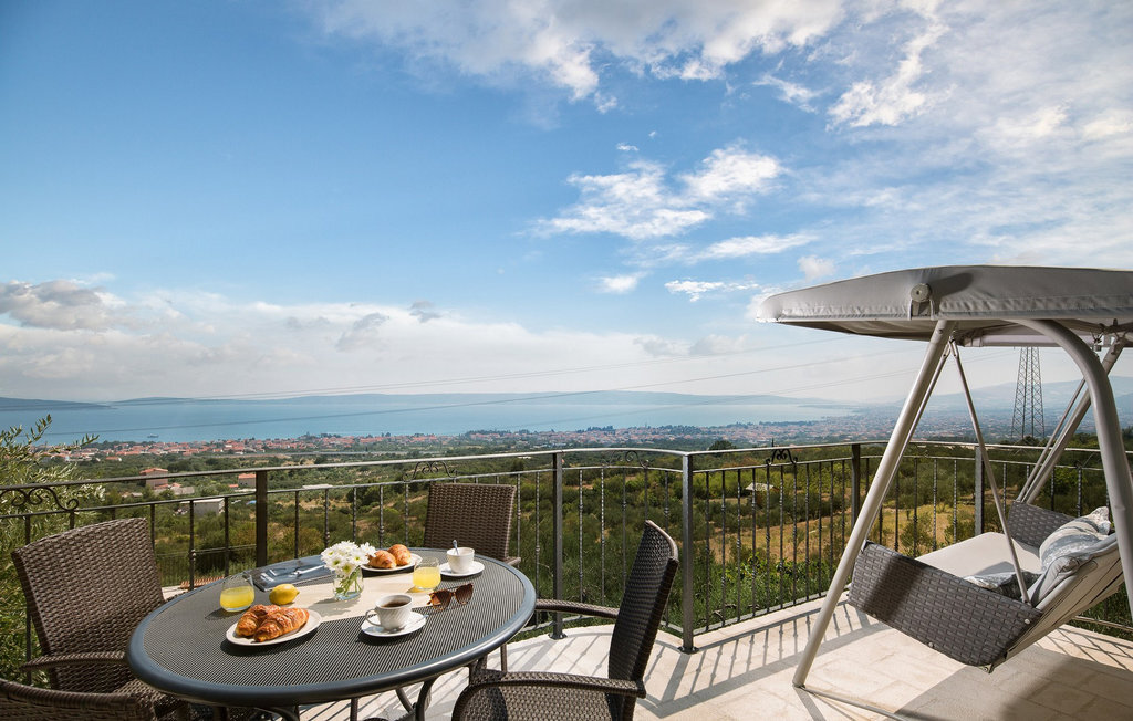 Le grand balcon avec vue sur la mer et les terrasses du jardin vous promettent détente et confort. Faites un barbecue le soir ou paressez sur les chaises longues au bord de la piscine à débordement.