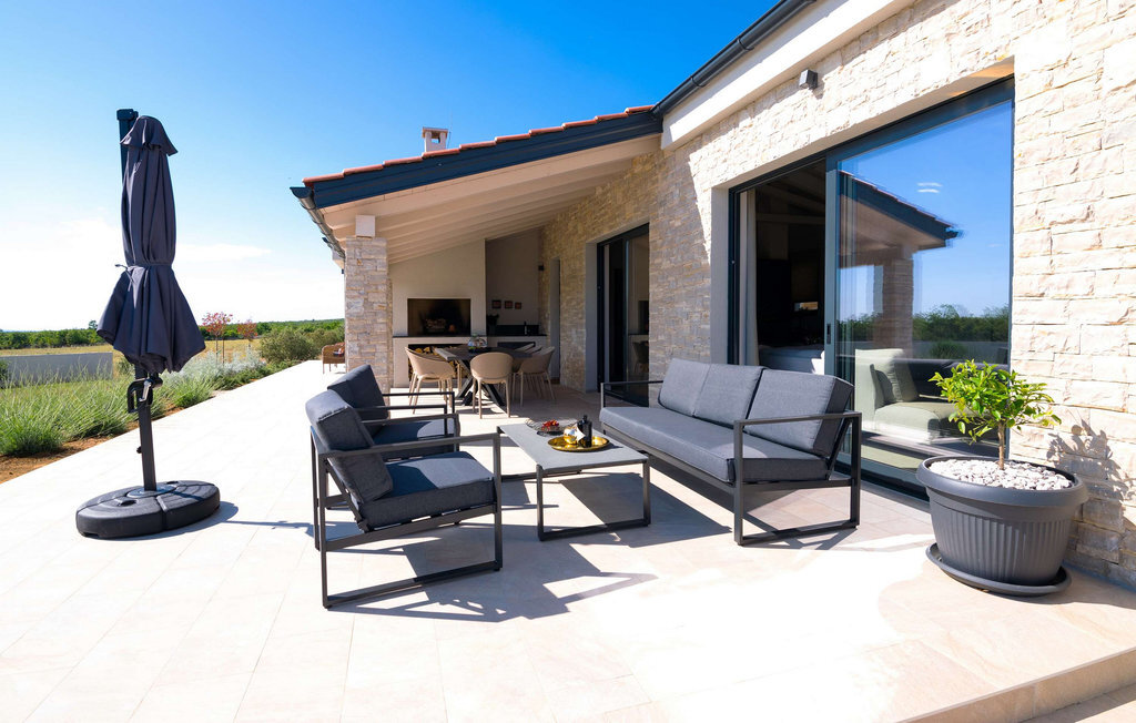 Le matin, sortez pieds nus sur votre terrasse équipée d'élégants meubles d'extérieur et faites tranquillement quelques brasses dans la grande piscine. Laissez-vous imprégner par l'atmosphère paisible des bains de soleil, profitez du calme pour méditer ou laissez vos enfants s'amuser avec le chien sur la vaste pelouse. Planifiez vos activités en prenant un délicieux petit-déjeuner en plein air et célébrez le temps passé ensemble avec des soirées barbecue pleines d'ambiance, accompagnées de vin et de chandelles.