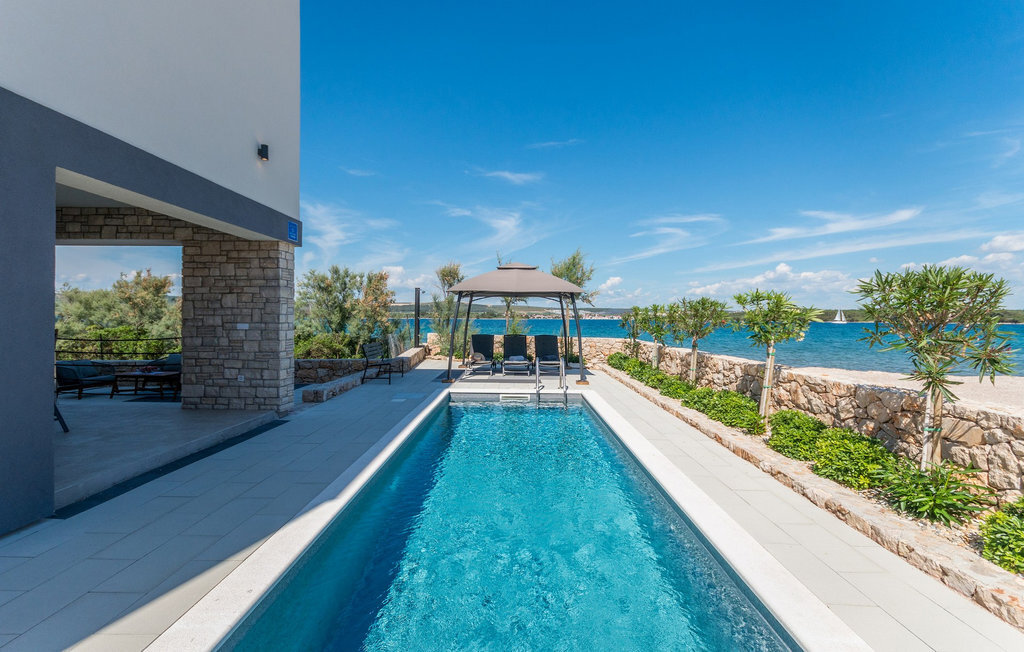 Sur la terrasse, savourez dès le matin votre café avec vue sur la mer d'un bleu éclatant. Plongez dans la piscine à tout moment, par exemple après un bain de soleil sur l'une des chaises longues. La longue table à manger est parfaite pour manger ensemble et, dès que le soleil se couche dans la mer, pour terminer la journée à la lueur des bougies. Le bruit des vagues et la brise méditerranéenne créent une atmosphère qui évoque immédiatement les vacances.