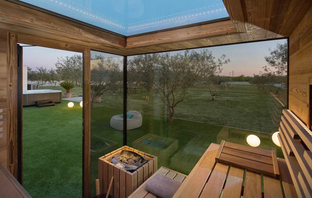 Bien-être à l'extérieur : Location de vacances disposant de chaises-longues et d'un ou plusieurs équipements tels que piscine extérieure, jacuzzi extérieur, lit à baldaquin de jardin etc...