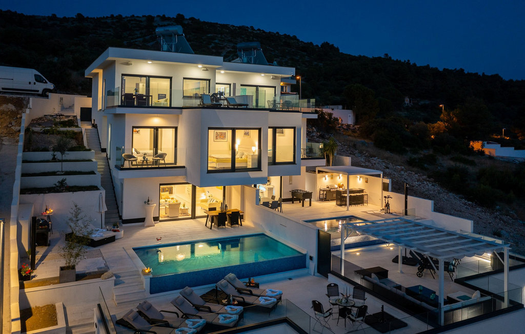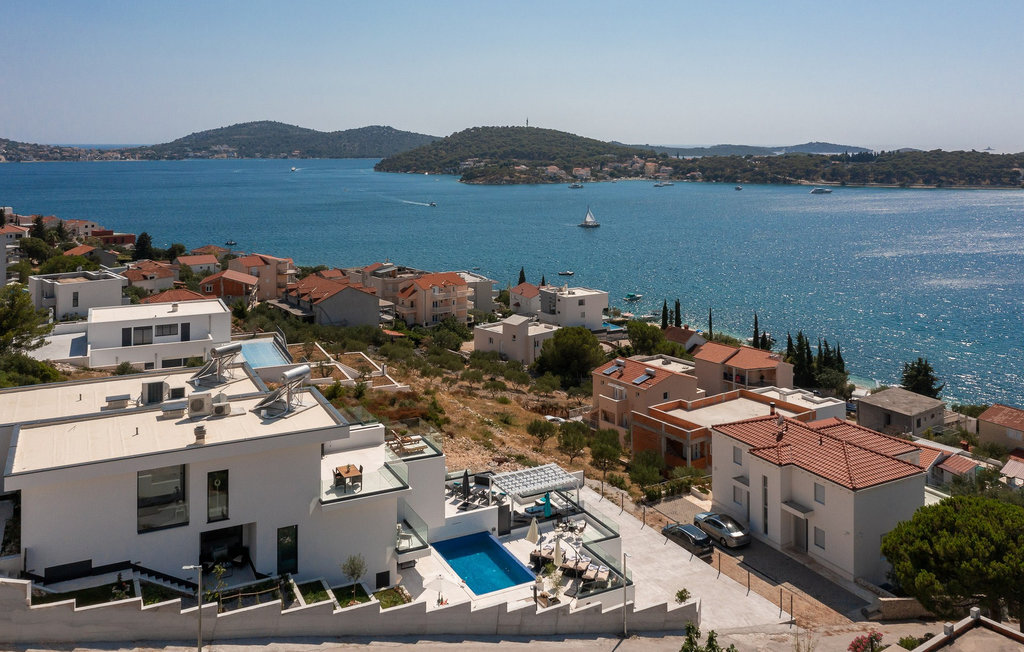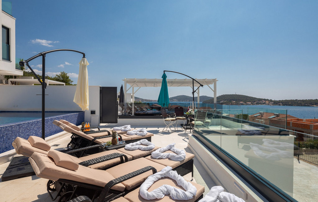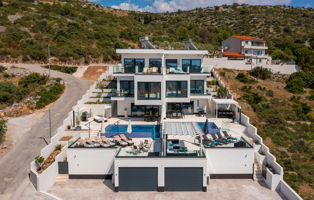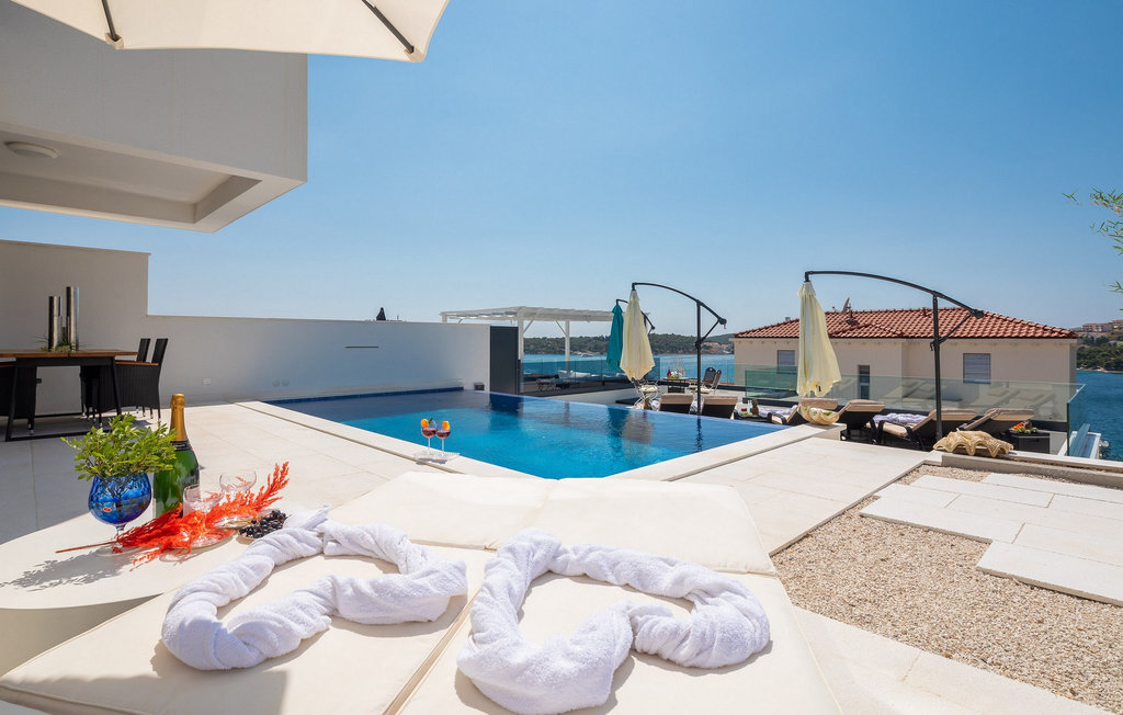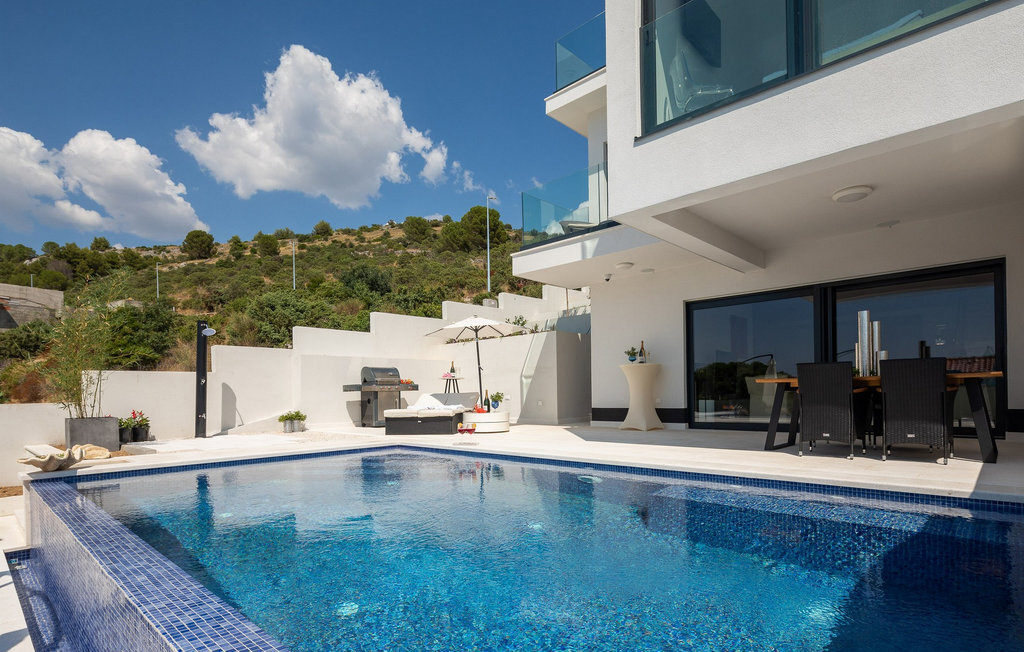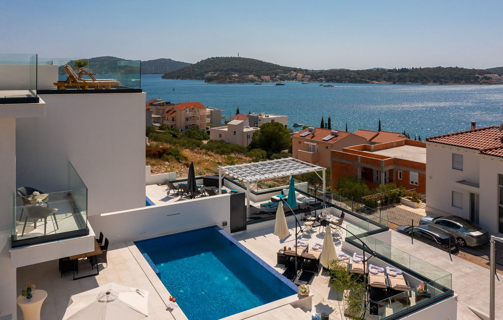 Profitez de vacances de rêve dans cette luxueuse maison de vacances avec piscine et vue magnifique sur la mer.