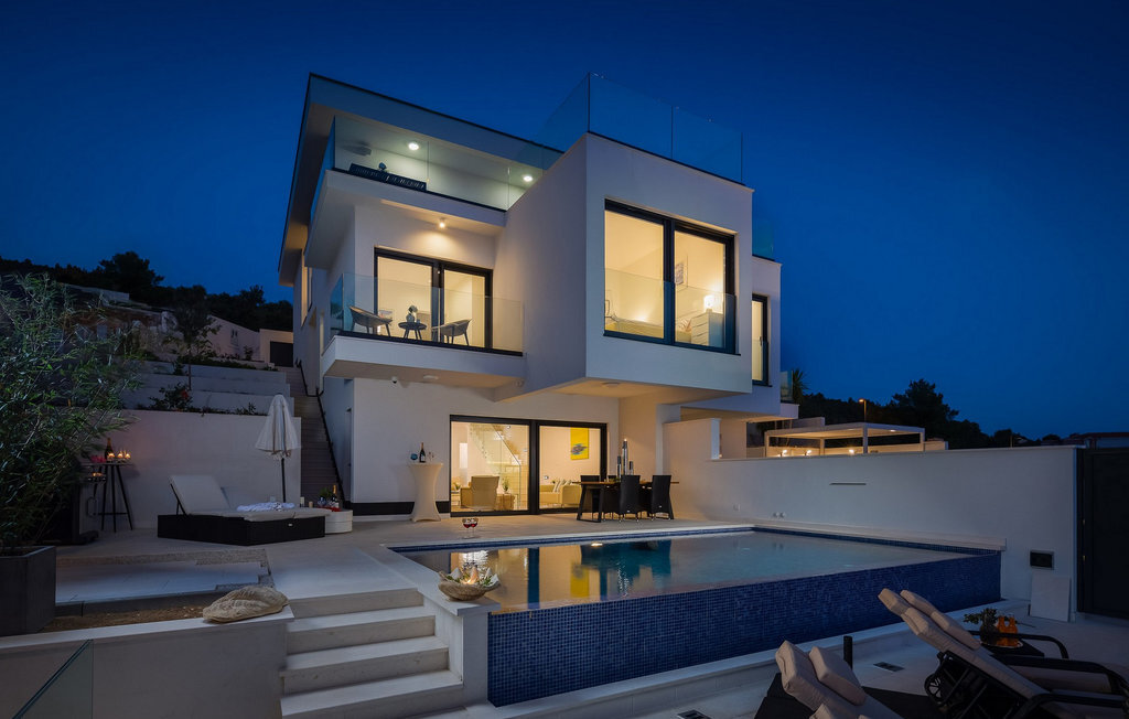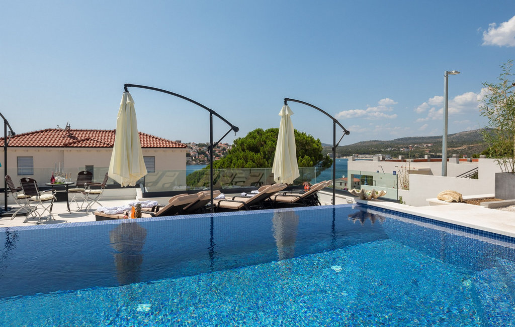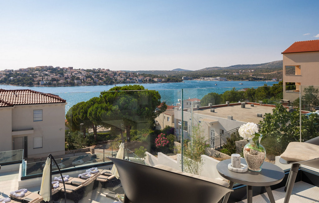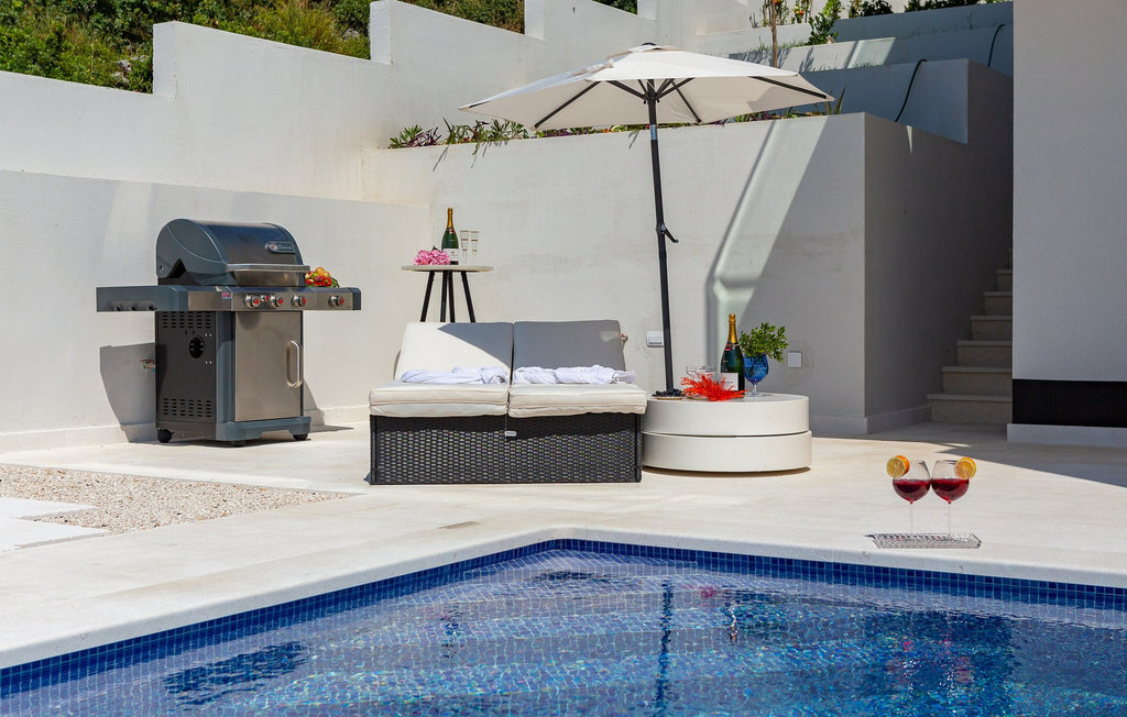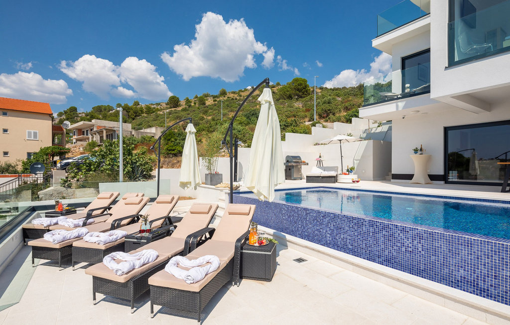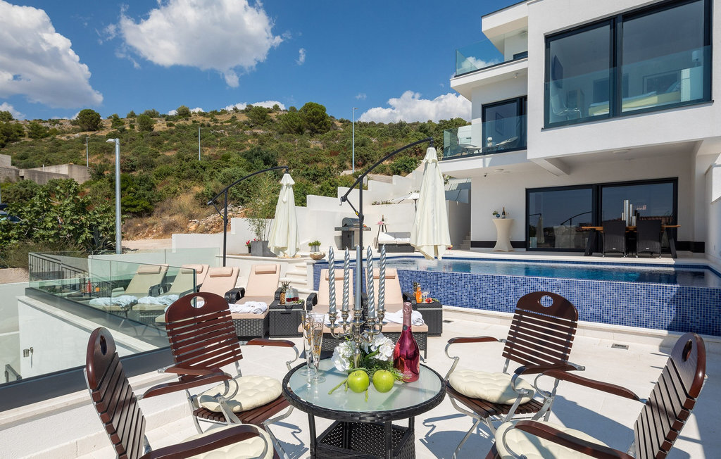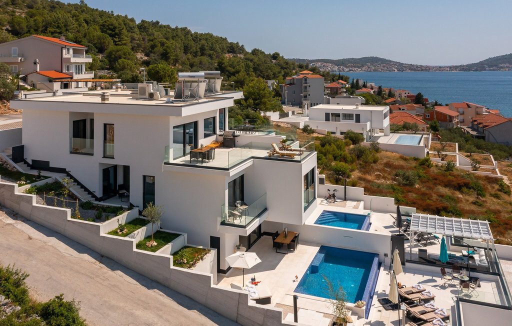 Profitez de vacances de rêve dans cette luxueuse maison de vacances avec piscine et vue magnifique sur la mer.