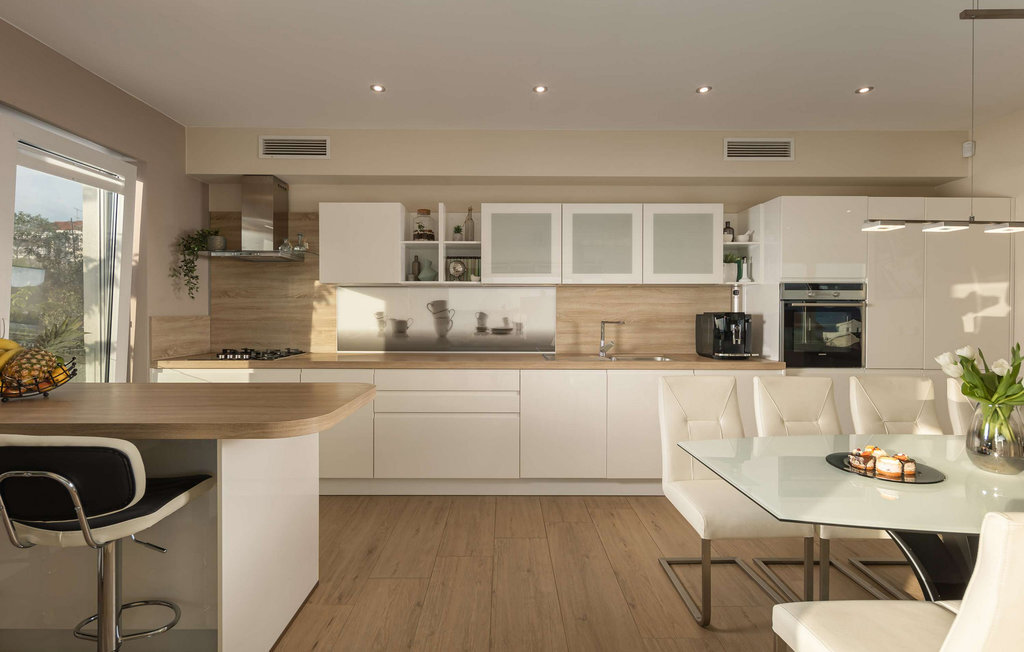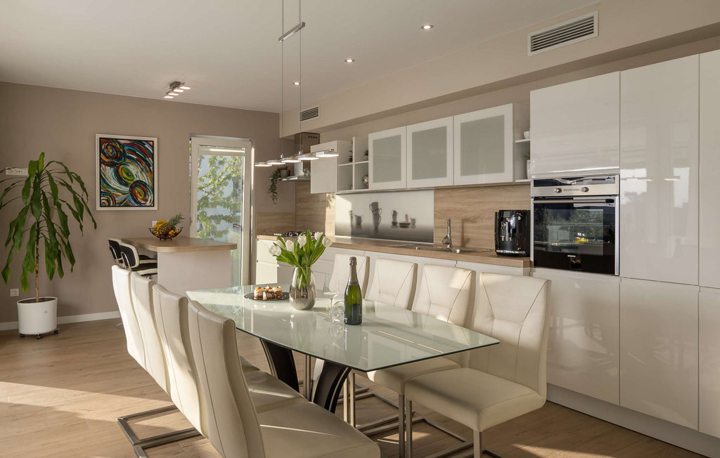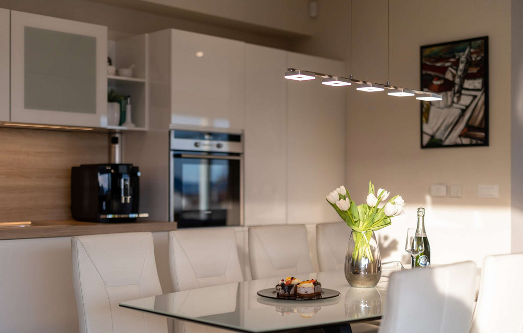 La somptueuse et moderne Villa Milagros vous accueille dans une ambiance lumineuse et un aménagement élégant. Le salon ouvert avec de grandes fenêtres panoramiques offre une vue magnifique sur la mer et est fait pour passer des heures de rêve à lire ou à boire un café. L'élégante cuisine s'intègre parfaitement dans la salle à manger, où vous pourrez dîner en famille ou entre amis, ou passer une soirée amusante à jouer aux cartes ou à la belote.
