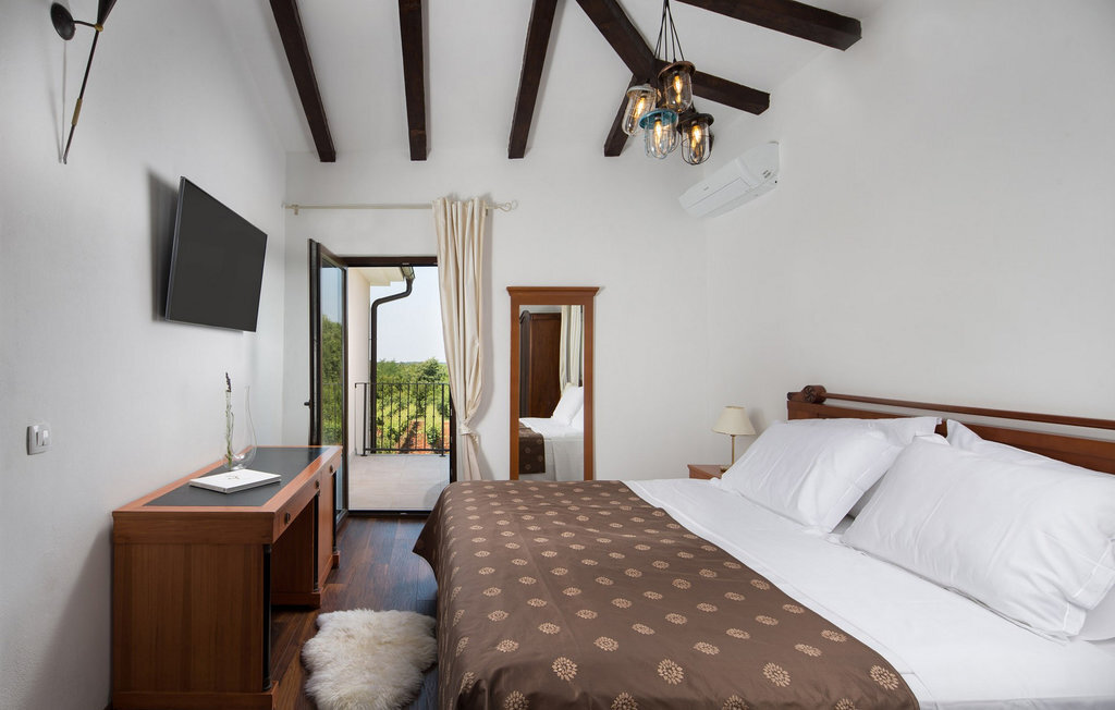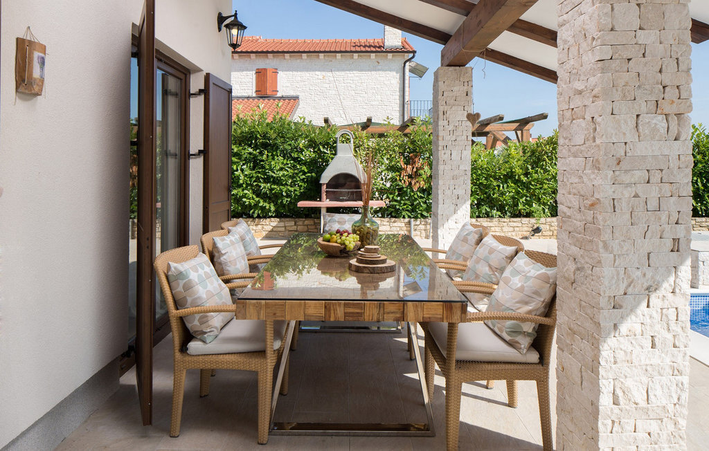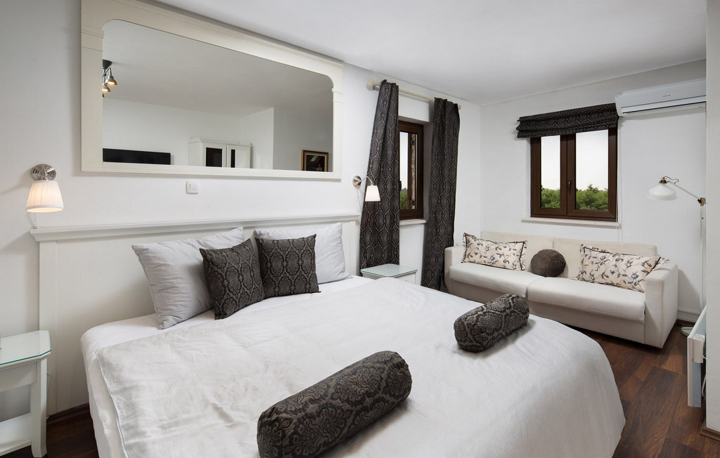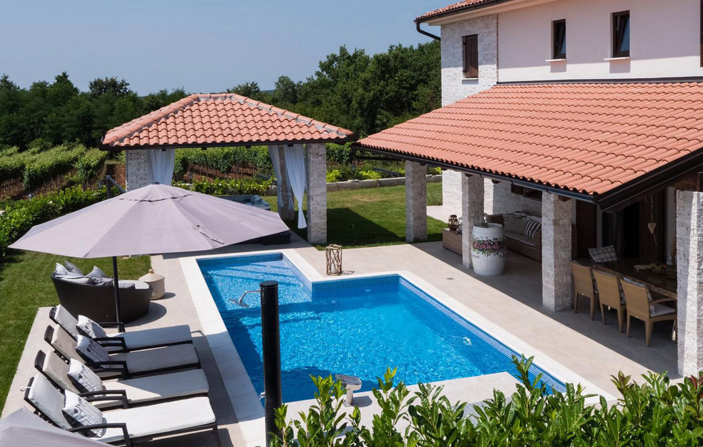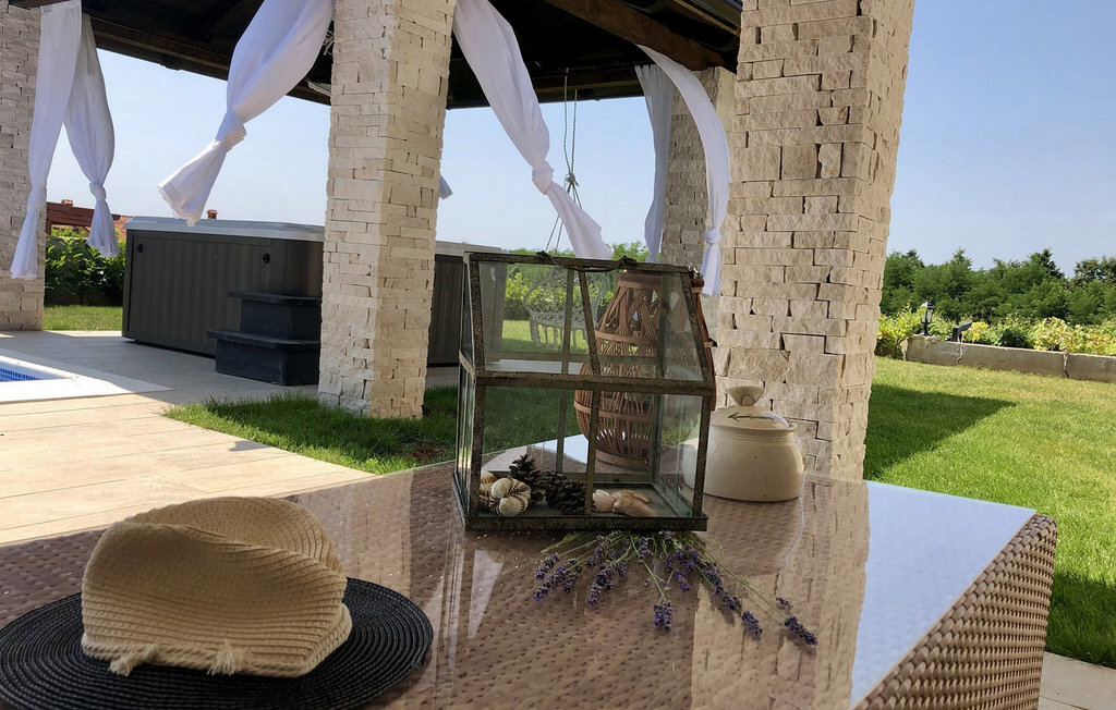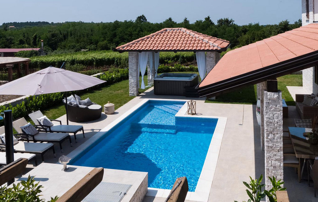 La Villa Theo est située dans la ville pittoresque de Vi?njan, dans la partie occidentale de l'Istrie, et constitue un excellent choix pour des vacances en famille. Si vous souhaitez profiter d'une nature magnifique, d'une offre gastronomique de premier ordre, de nombreuses activités et d'une maison de luxe, cette villa vous offrira les vacances que vous attendez. Cette élégante maison avec vue sur de charmantes maisons et vignobles d'Istrie peut être la maison de rêve temporaire pour 6 + 2 invités. Au rez-de-chaussée, vous trouverez une cuisine entièrement équipée de la plus haute qualité, une salle à manger avec 8 places assises et un salon confortable avec cheminée. Dans le salon climatisé, vous pouvez profiter d'un home cinéma ou d'une PlayStation 4. Au rez-de-chaussée, vous pouvez encore vous détendre dans le sauna infrarouge avec sa propre douche. À l'étage supérieur se trouvent 3 chambres à coucher avec de confortables lits king-size et deux chambres disposent d'un canapé-lit comme lit supplémentaire. Chaque chambre est climatisée et dispose d'une télévision avec internet et d'un abonnement à Netflix. A l'étage supérieur se trouvent 3 salles de bain élégantes ? 2 salles de bains avec douche et un lavabo et une avec deux lavabos et une baignoire. Au même étage se trouve une buanderie avec machine à laver et sèche-linge. Sur un terrain entièrement clôturé de 650 m2 se trouve un magnifique jardin où vous pourrez vous détendre en famille ou entre amis. Rafraîchissez-vous dans une piscine de 30 m2 avec cascade ou regardez votre série préférée dans le jacuzzi, au-dessus duquel se trouve une télévision avec connexion Internet. Autour de la piscine, il y a 4 chaises longues et 1 chaise longue ronde de terrasse pour les journées de détente ? l'autre se trouve sur la terrasse d'une des chambres. En dessous de la terrasse couverte se trouve une table en plein air pour 8 personnes, un endroit idéal pour déguster de délicieux repas préparés sur le barbecue à gaz et à charbon de bois. Les enfants s'amuseront avec les différents accessoires pour la piscine, les jouets et sur le toboggan. La villa dispose de deux places de parking couvertes. La charmante ville de Vi?njan est l'une des nombreuses villes pittoresques d'Istrie et est surtout connue pour son observatoire astronomique. Cette petite ville se trouve à 15 km de Pore ? et à 20 km de Novigrad. Les parcs à thème Aquacolours et Aquapark Istralandia se trouvent à proximité. La grotte de Baredine, située à seulement 7 km de Visnjan, est un monument naturel géomorphologique. La nature de cette région offre de nombreuses possibilités d'excursions, de randonnées à pied ou à vélo, et vous serez enthousiasmé par les célèbres routes du vin et de l'huile d'olive ainsi que par l'offre gastronomique à base de truffes. Veuillez noter que ce logement n'accepte pas les groupes de jeunes ou les enterrements de vie de garçon. Un groupe de jeunes dans ce logement est composé de personnes de moins de 30 ans. Ne réservez pas ce logement si vous êtes un groupe de jeunes ou un enterrement de vie de garçon, car votre réservation sera refusée après la réservation, ce qui peut également être le cas à l'arrivée au logement ou pendant votre séjour, et vous ne serez pas remboursé.