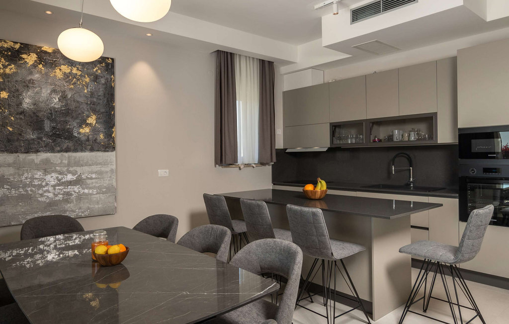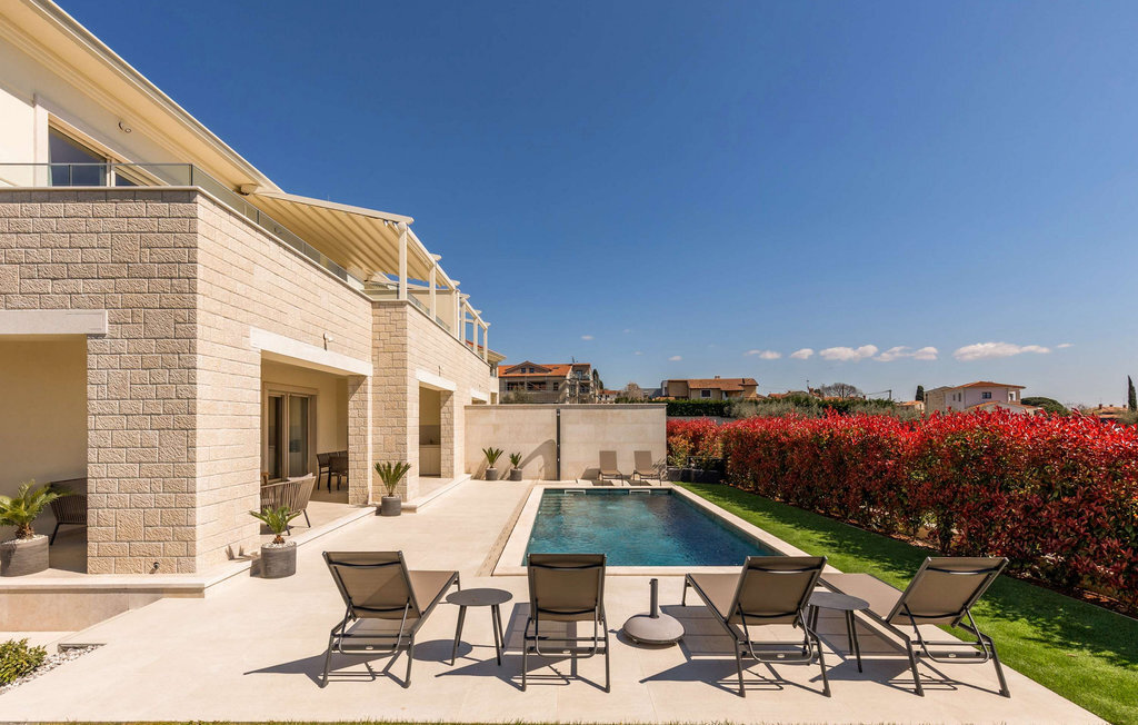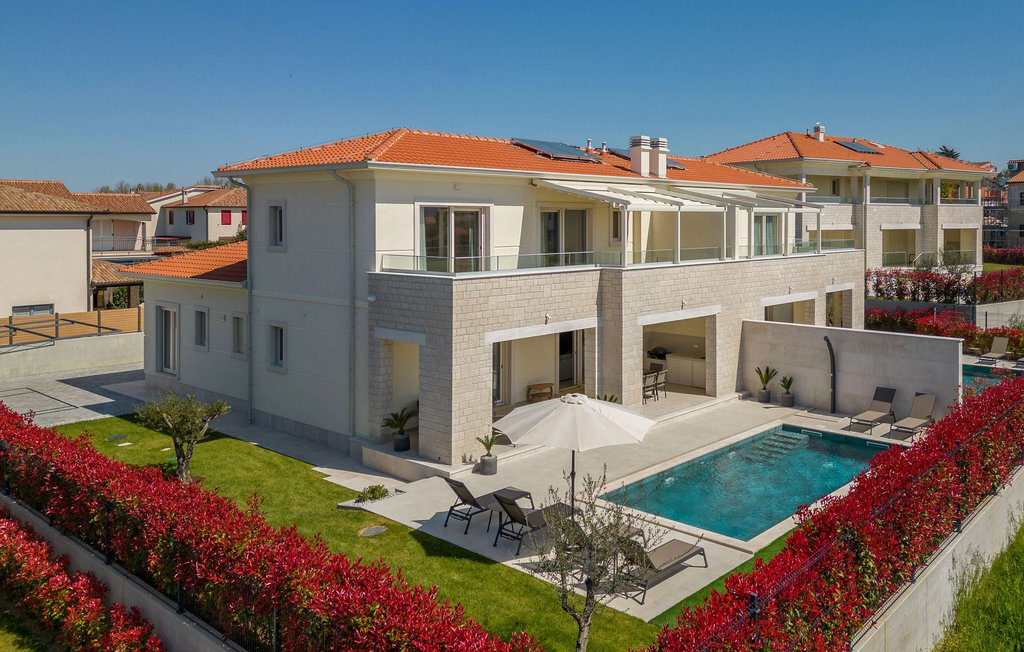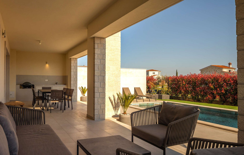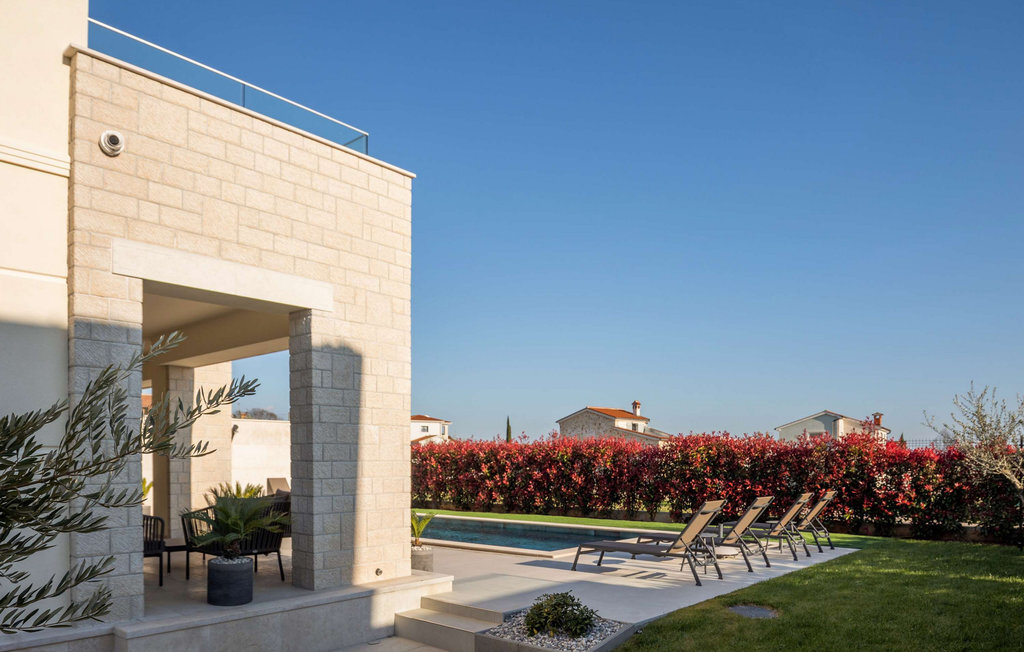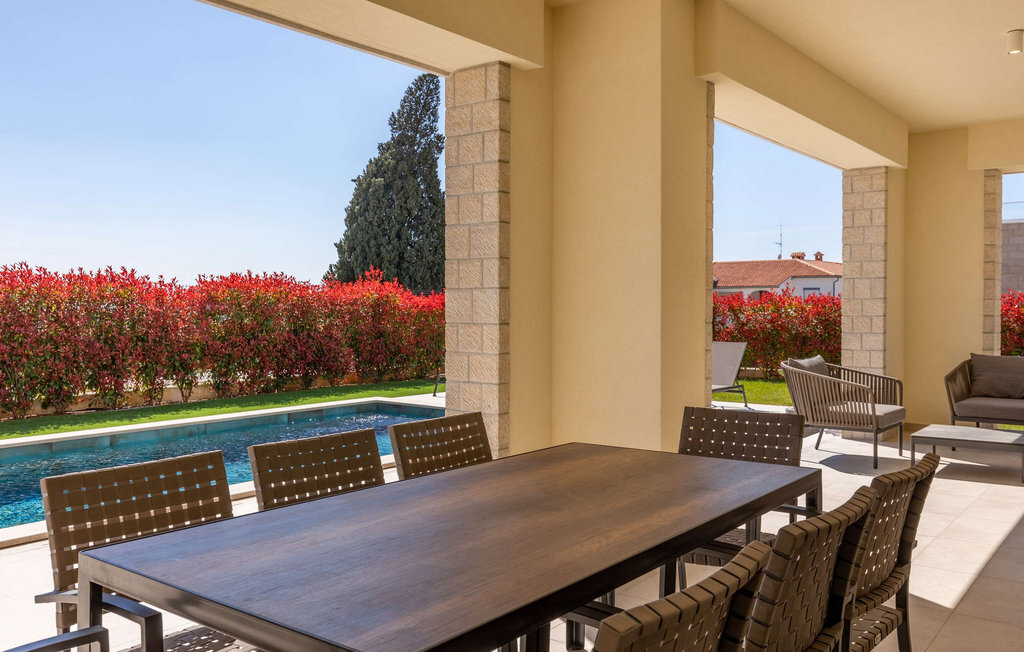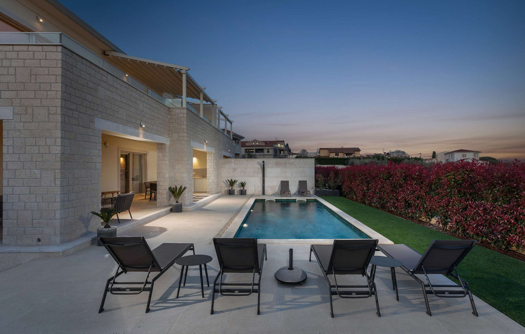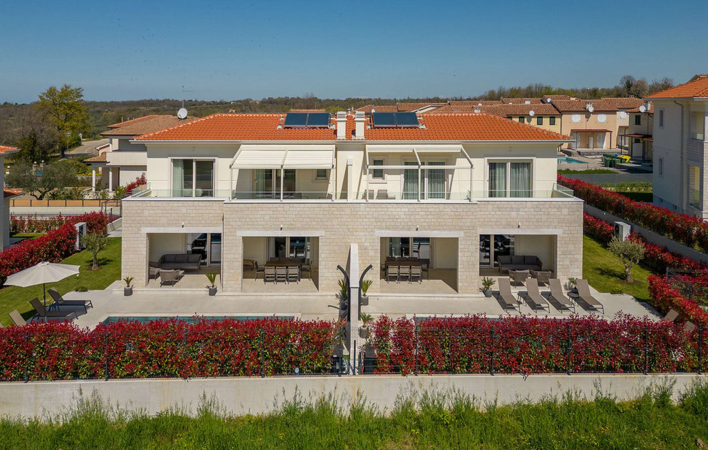 Sur la magnifique péninsule istrienne, dans la paisible ville de Vabriga, se trouve l'une des villas les plus fabuleuses de la région ? La villa Bor. Située près de la mer, à seulement 1,3 km de la plage la plus proche, cette magnifique villa offre une vue incroyable sur la nature pittoresque de l'Istrie et sur la campagne, où vous pourrez voyager vers les plus belles pensées et vous détendre complètement. La villa Bor est un exemple parfait de design moderne. Cette villa de luxe est située sur un magnifique terrain et se compose de trois chambres à coucher climatisées, chacune avec sa propre salle de bain, ainsi que d'un salon et d'une cuisine modernes. L'intérieur de la villa est équipé d'appareils modernes et de meubles de qualité et respire l'élégance et le raffinement. En conséquence, les jardins de la Villa Bor sont également impressionnants. Une terrasse spacieuse avec une grande piscine est entourée de verdure et de plantes méditerranéennes et le jardin offre une vue magnifique sur les collines environnantes. Vous y trouverez l'endroit parfait pour vous détendre et profiter de votre intimité, mais aussi pour vous amuser en famille ou entre amis. Vous avez à votre disposition une piscine chauffée de 28 m², ce qui rend l'atmosphère encore plus agréable sous le ciel étoilé. La villa est entièrement clôturée et offre dans la cour 2 places de parking couvertes pour vos voitures. S'il s'agit d'accueillir un plus grand nombre de personnes, la villa jumelle Lara Vabriga se trouve à côté de la villa Bor et peut accueillir au total 12 personnes de manière optimale, 16 au maximum. Villa Bor est une destination idéale pour tous ceux qui le souhaitent Profitez du luxe et de la magnifique nature de l'Istrie. Elle est située à proximité de nombreuses attractions touristiques, dont les célèbres vins d'Istrie, la gastronomie istrienne et de nombreuses attractions culturelles et historiques. De plus, cette magnifique villa vous offre une intimité et une détente absolues pour des vacances parfaites dont vous vous souviendrez longtemps. Bienvenue à la Villa Bor !