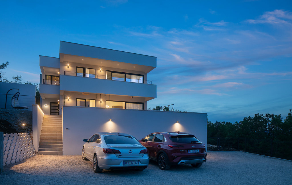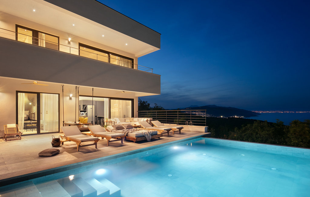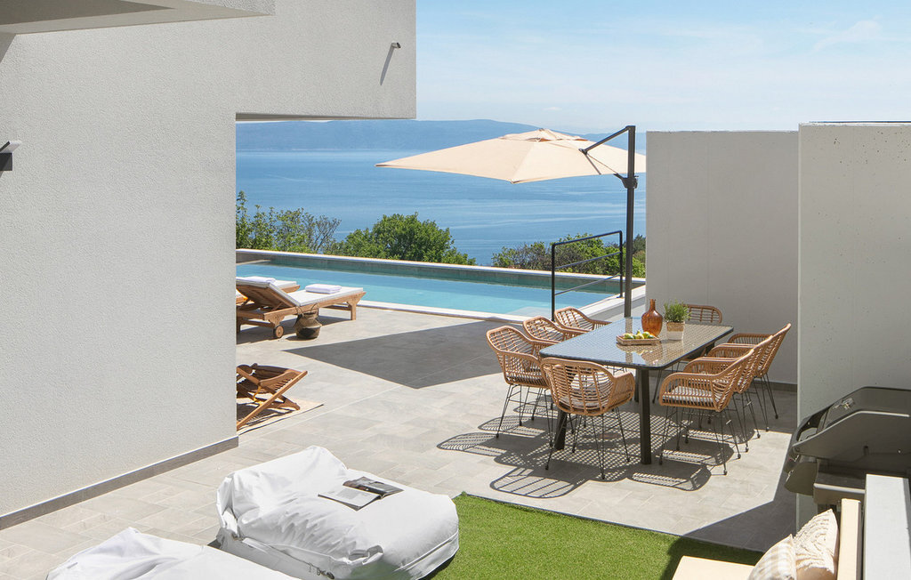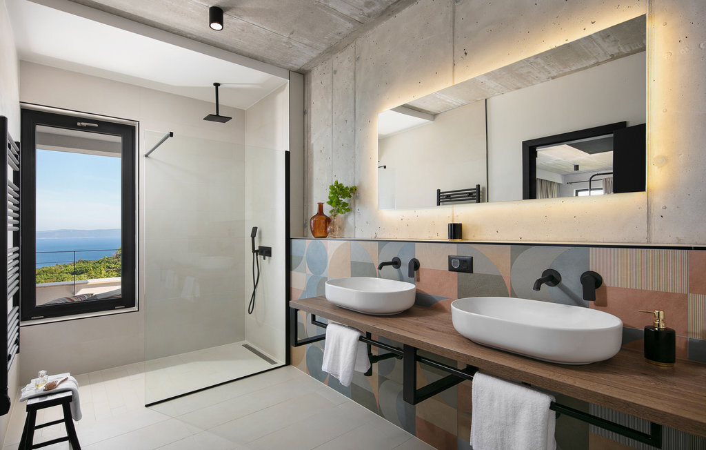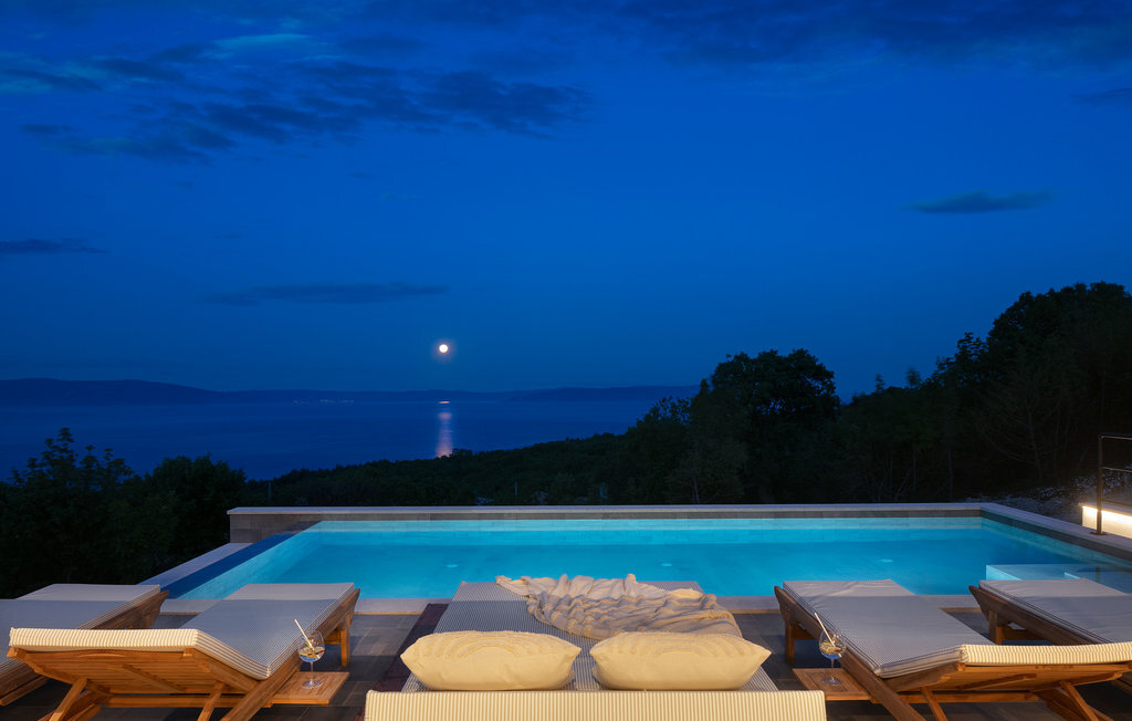 La Villa The View se trouve en Istrie, dans la ville de Crni, et représente un véritable luxe pour tout hôte à la recherche de vacances parfaites dans le calme et la tranquillité. Si vous voulez absolument échapper à la vie trépidante et vous offrir, à vous et à votre famille, le meilleur du meilleur, alors la Villa The View est exactement ce qu'il vous faut ! Dès que vous entrerez dans la villa, vous serez conquis par l'intérieur magnifiquement aménagé, qui combine le moderne et le contemporain, et la vue sur la mer depuis chaque chambre vous coupera le souffle ! Construite en 2023, elle offre 396 m2 de surface habitable, tandis que la surface totale de la propriété est de 827 m2. La plage de galets la plus proche, Sv. Le port de plaisance, est à 2 km. Cette villa entièrement climatisée peut accueillir un maximum de 8 personnes dans 4 chambres à coucher, dont une au rez-de-chaussée et les trois autres à l'étage. Deux chambres disposent d'un lit double (200x210 et 180x200) et les deux autres chambres disposent chacune de deux lits simples qui peuvent être réunis pour former un lit double (180x200). En outre, les 4 chambres disposent d'une salle de bain privée : 3 avec douche et 1 avec baignoire. Chaque chambre dispose d'une terrasse privée avec des sièges où vous pouvez boire votre café du matin ou lire le journal. Au rez-de-chaussée, vous avez la possibilité de préparer des repas pour votre famille et vos amis grâce à la cuisine moderne et entièrement équipée avec un bar et deux tabourets de bar. Juste à côté de la cuisine se trouve une salle à manger avec une table, à côté de laquelle il y a une sortie directe sur la terrasse extérieure. Le salon est l'endroit idéal pour se réunir le soir et regarder ses films ou séries préférés. Il comprend un canapé, un fauteuil, une table basse, des tabourets, une cheminée romantique et une télévision. La terrasse extérieure offre le meilleur : une vue sur la mer Adriatique pendant que vous vous baignez dans une piscine éclairée de 36 m2 et d'une profondeur de 1,45 mètre. La piscine est chauffée en avant et en arrière-saison. Sur la pelouse à côté de la piscine, 8 chaises longues sont à votre disposition, où vous pouvez profiter des rayons du soleil et reposer votre corps et votre esprit. Bien sûr, il y a aussi des sièges à l'extérieur et une petite table sur la terrasse. Il y a également une cuisine d'été, un barbecue à gaz en plein air et une table à manger en plein air avec 8 places assises. De là, vous pourrez profiter des soirées d'été et jouir d'une vue dégagée sur la mer, les villes de Rijeka et Rabac ainsi que l'île de Cres. Les amateurs d'une délicieuse goutte de vin seront ravis de la cave à vin, où ils pourront jouer au billard en bonne compagnie. De même, les enfants se réjouiront de la salle de jeux, où se trouve une PlayStation 4, et ils auront également accès aux chaînes Netflix et Disney Plus. Dans la villa, il est possible de jouer aux fléchettes et au billard. Parmi les contenus supplémentaires disponibles pendant le séjour, il y a une machine à laver, un sèche-linge et un fer à repasser. Il y a également 1 toilette séparée, un distributeur de nourriture et un lit d'enfant, ce qui sera d'une grande aide si les plus petits vous accompagnent en vacances. La cour intérieure de la Villa The View offre 4 places de parking privées et un chargeur pour une voiture électrique. À seulement 8 km de la villa, sur une colline, se trouve Labin, une ville médiévale pleine de beauté et de nature intacte, où vous pourrez profiter d'une vue magnifique sur Rabac, Cres et les environs de Labin depuis la forteresse de la ville. Faites du shopping dans de petites boutiques élégantes et rafraîchissez-vous à la terrasse de l'un des cafés ou restaurants. Bienvenue en Istrie, un véritable petit paradis sur terre que vous ne quitterez plus et que vous voudrez retrouver dès l'année prochaine !