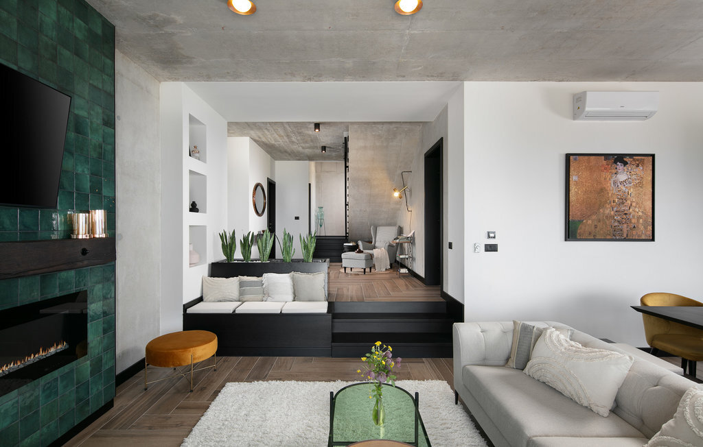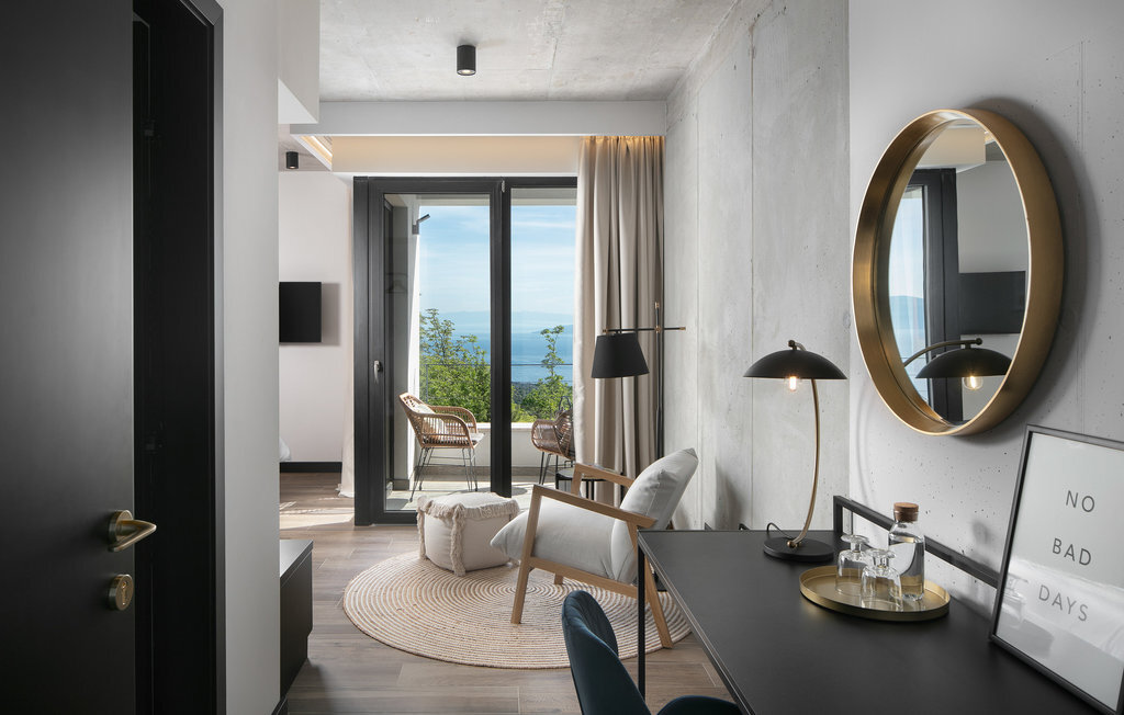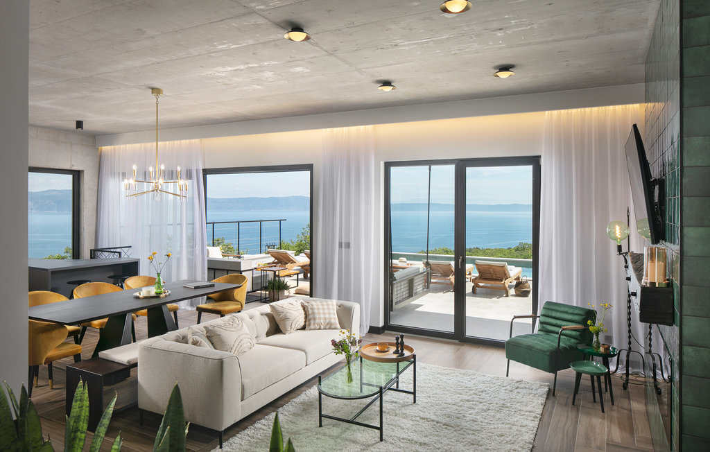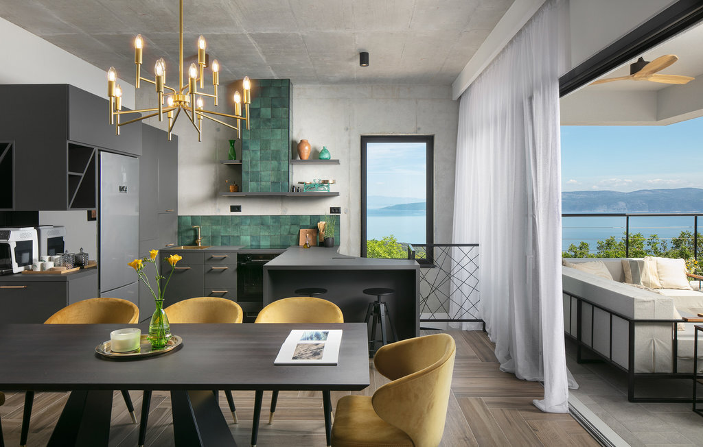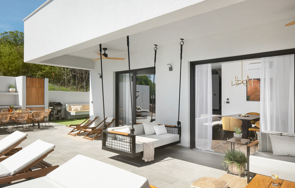 La Villa The View se trouve en Istrie, dans la ville de Crni, et représente un véritable luxe pour tout hôte à la recherche de vacances parfaites dans le calme et la tranquillité. Si vous voulez absolument échapper à la vie trépidante et vous offrir, à vous et à votre famille, le meilleur du meilleur, alors la Villa The View est exactement ce qu'il vous faut ! Dès que vous entrerez dans la villa, vous serez conquis par l'intérieur magnifiquement aménagé, qui combine le moderne et le contemporain, et la vue sur la mer depuis chaque chambre vous coupera le souffle ! Construite en 2023, elle offre 396 m2 de surface habitable, tandis que la surface totale de la propriété est de 827 m2. La plage de galets la plus proche, Sv. Le port de plaisance, est à 2 km. Cette villa entièrement climatisée peut accueillir un maximum de 8 personnes dans 4 chambres à coucher, dont une au rez-de-chaussée et les trois autres à l'étage. Deux chambres disposent d'un lit double (200x210 et 180x200) et les deux autres chambres disposent chacune de deux lits simples qui peuvent être réunis pour former un lit double (180x200). En outre, les 4 chambres disposent d'une salle de bain privée : 3 avec douche et 1 avec baignoire. Chaque chambre dispose d'une terrasse privée avec des sièges où vous pouvez boire votre café du matin ou lire le journal. Au rez-de-chaussée, vous avez la possibilité de préparer des repas pour votre famille et vos amis grâce à la cuisine moderne et entièrement équipée avec un bar et deux tabourets de bar. Juste à côté de la cuisine se trouve une salle à manger avec une table, à côté de laquelle il y a une sortie directe sur la terrasse extérieure. Le salon est l'endroit idéal pour se réunir le soir et regarder ses films ou séries préférés. Il comprend un canapé, un fauteuil, une table basse, des tabourets, une cheminée romantique et une télévision. La terrasse extérieure offre le meilleur : une vue sur la mer Adriatique pendant que vous vous baignez dans une piscine éclairée de 36 m2 et d'une profondeur de 1,45 mètre. La piscine est chauffée en avant et en arrière-saison. Sur la pelouse à côté de la piscine, 8 chaises longues sont à votre disposition, où vous pouvez profiter des rayons du soleil et reposer votre corps et votre esprit. Bien sûr, il y a aussi des sièges à l'extérieur et une petite table sur la terrasse. Il y a également une cuisine d'été, un barbecue à gaz en plein air et une table à manger en plein air avec 8 places assises. De là, vous pourrez profiter des soirées d'été et jouir d'une vue dégagée sur la mer, les villes de Rijeka et Rabac ainsi que l'île de Cres. Les amateurs d'une délicieuse goutte de vin seront ravis de la cave à vin, où ils pourront jouer au billard en bonne compagnie. De même, les enfants se réjouiront de la salle de jeux, où se trouve une PlayStation 4, et ils auront également accès aux chaînes Netflix et Disney Plus. Dans la villa, il est possible de jouer aux fléchettes et au billard. Parmi les contenus supplémentaires disponibles pendant le séjour, il y a une machine à laver, un sèche-linge et un fer à repasser. Il y a également 1 toilette séparée, un distributeur de nourriture et un lit d'enfant, ce qui sera d'une grande aide si les plus petits vous accompagnent en vacances. La cour intérieure de la Villa The View offre 4 places de parking privées et un chargeur pour une voiture électrique. À seulement 8 km de la villa, sur une colline, se trouve Labin, une ville médiévale pleine de beauté et de nature intacte, où vous pourrez profiter d'une vue magnifique sur Rabac, Cres et les environs de Labin depuis la forteresse de la ville. Faites du shopping dans de petites boutiques élégantes et rafraîchissez-vous à la terrasse de l'un des cafés ou restaurants. Bienvenue en Istrie, un véritable petit paradis sur terre que vous ne quitterez plus et que vous voudrez retrouver dès l'année prochaine !