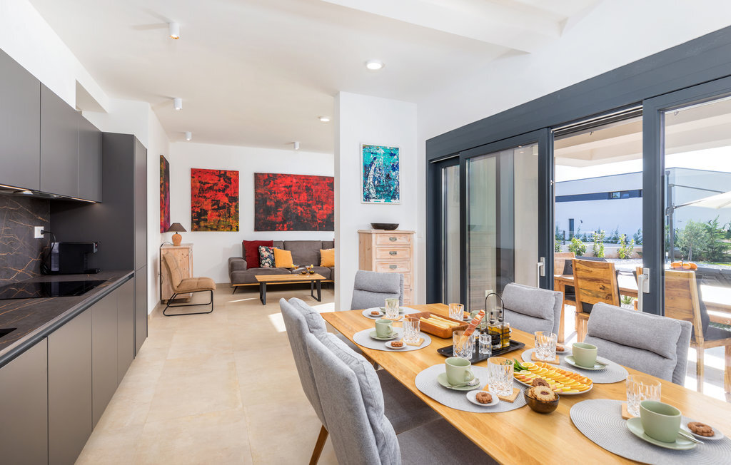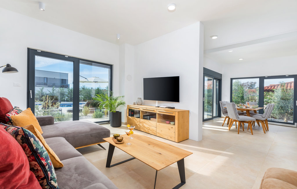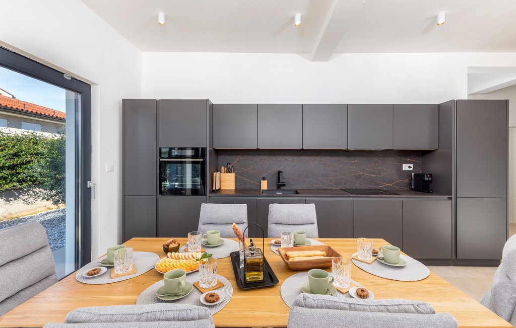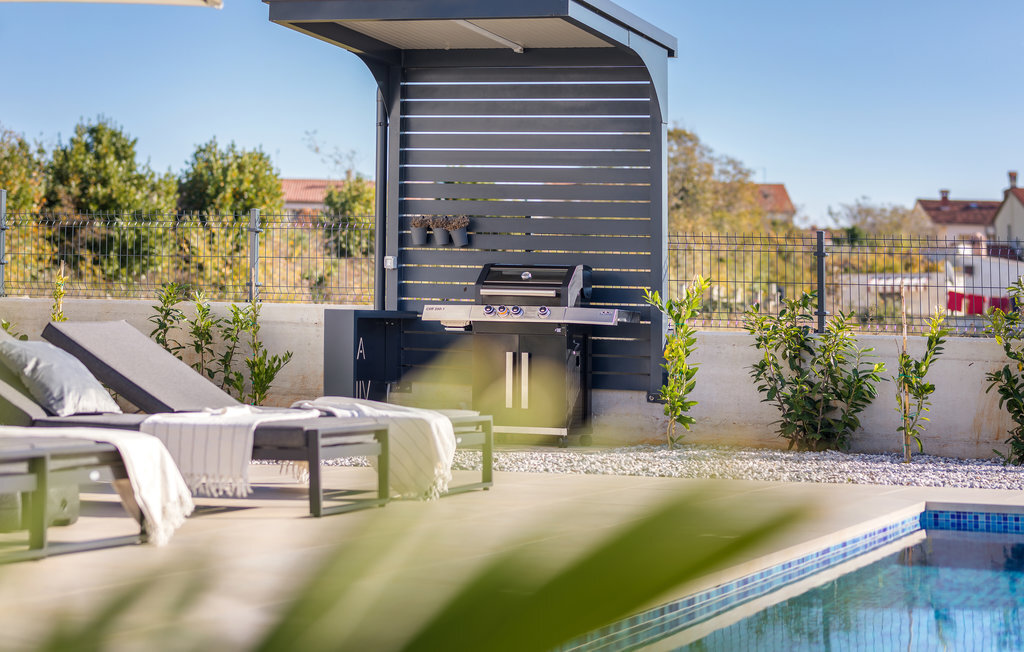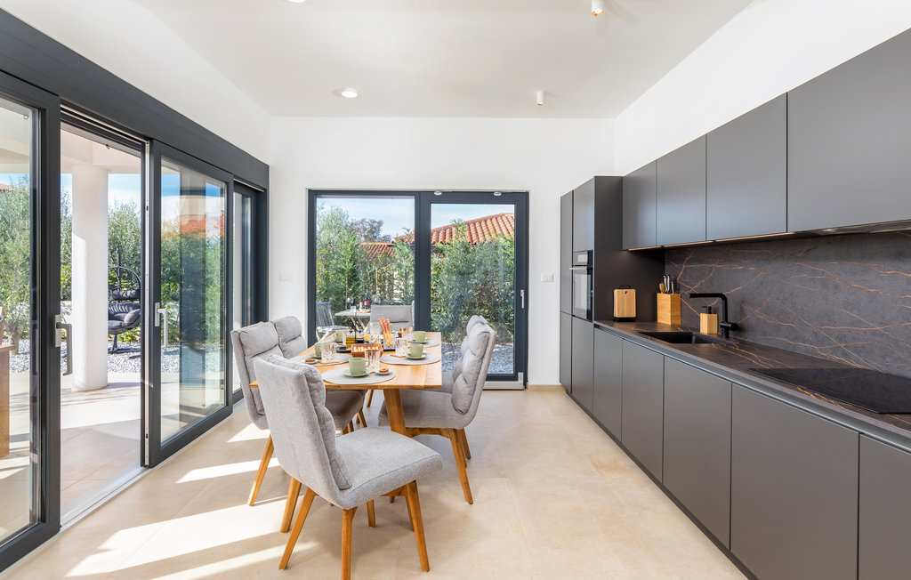 Lorsque vous pensez à vos vacances en Istrie, vous avez certainement en tête une maison moderne avec un confort attrayant, une belle décoration et une atmosphère chaleureuse. C'est exactement ce qui vous attend dans cette belle maison. Réjouissez-vous de l'aménagement moderne qui fait par exemple de la cuisine un plaisir, les meubles de qualité et l'art sélectionné sur les murs créent également un environnement de bien-être. Passez des nuits reposantes dans les chambres à coucher avec salle de bain privée et réunissez-vous le matin pour le petit-déjeuner sur la terrasse. Pendant que certains mangent encore, les petits sont probablement impatients de plonger dans la piscine et de se rafraîchir.