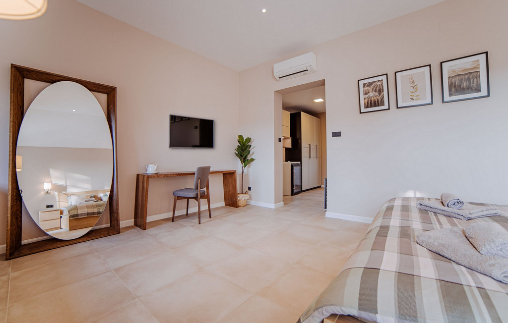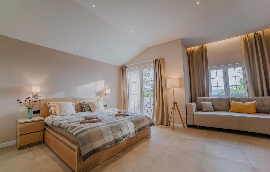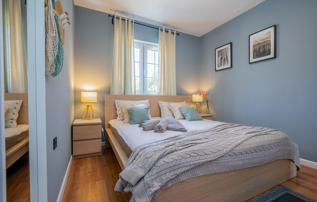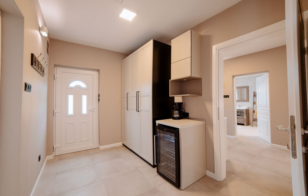 La charmante villa Mamma Mia est située dans le village romantique de Klimno, sur la plus grande île croate, Krk. La vie insulaire, la mer chaude et scintillante, les baies d'une beauté enchanteresse, le climat agréable et la végétation méditerranéenne odorante font de Krk une destination de vacances idéale, digne d'un conte de fées. La magnifique villa Mamma Mia peut accueillir 8 hôtes dans quatre chambres à coucher agréablement aménagées avec des lits doubles, toutes situées à l'étage supérieur de la villa. La villa dispose également de 3 salles de bains luxueuses avec douche de plain-pied. Le rez-de-chaussée se compose d'une cuisine entièrement équipée avec un coin repas et d'un salon où vous pourrez vous détendre à côté d'une télévision intelligente et d'une console PlayStation. L'intérieur de la Villa Mamma Mia dégage de la chaleur grâce aux détails soigneusement choisis, tandis que les murs de couleur pastel ajoutent une parfaite dose de charme à l'intérieur. Ici, chaque hôte se sent à l'aise comme dans sa propre maison. Le jardin de 600 m², entièrement clôturé, dispose d'une belle piscine (4,5 x 7 m) dans laquelle les hôtes peuvent prendre un bain rafraîchissant pendant les chaudes journées d'été et se prélasser au soleil sur les confortables chaises longues qui l'entourent. L'espace extérieur verdoyant dispose également d'un barbecue au charbon de bois sur lequel vous pourrez préparer de délicieux plats frais pour vos amis et votre famille. L'offre de la villa comprend également 3 places de parking privées. Passez vos vacances à Klimno sur l'île de Krk, un endroit connu pour son offre viticole et gastronomique extrêmement riche. Vous pouvez rejoindre la magnifique île de Krk par la terre et la mer et profiter de sa riche végétation, du tourisme nautique, de diverses activités sportives et de la boue connue pour ses propriétés curatives. La riche histoire et l'offre dynamique de l'île enthousiasment les visiteurs année après année. En bonus supplémentaire, Krk dispose également de son propre aéroport, ce qui facilite considérablement les arrivées et les départs vers cette île de rêve. Pour vos prochaines vacances, choisissez la Villa Mamma Mia à Klimno et plongez dans le mode de vie de l'île. *Pour la saison 2023, la villa disposera d'une piscine chauffée.