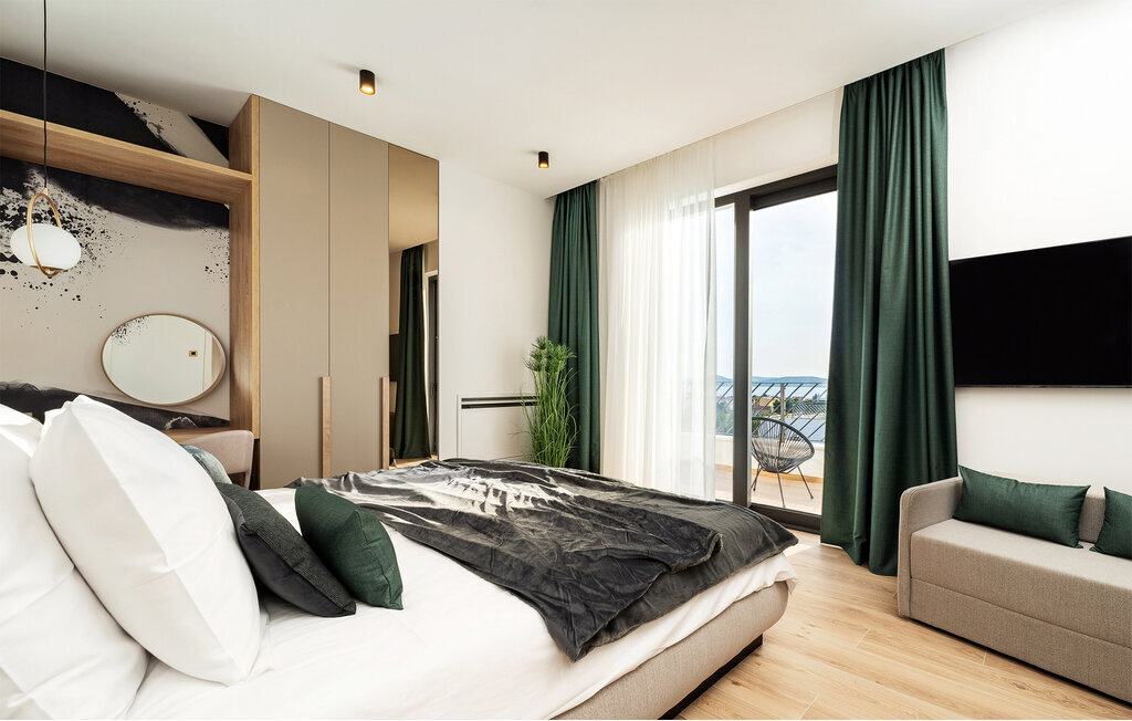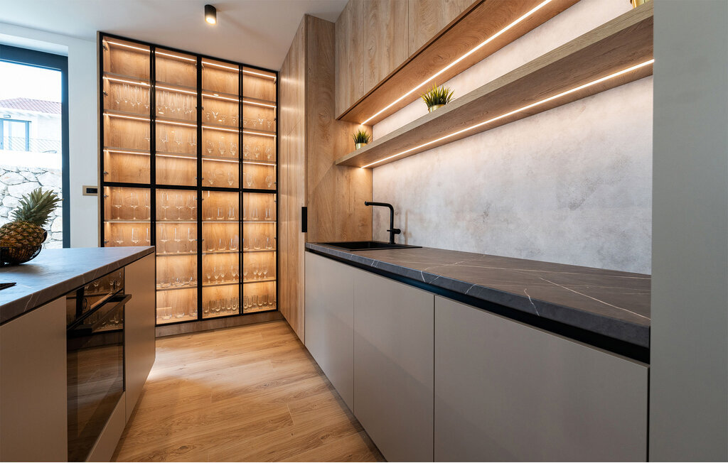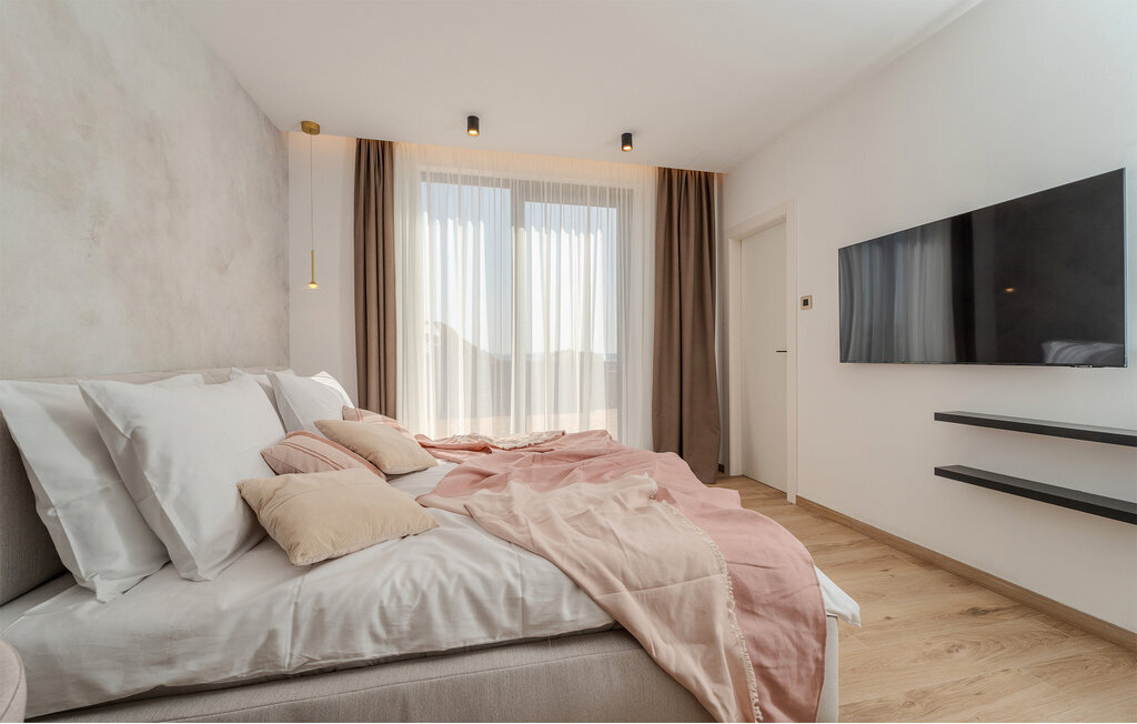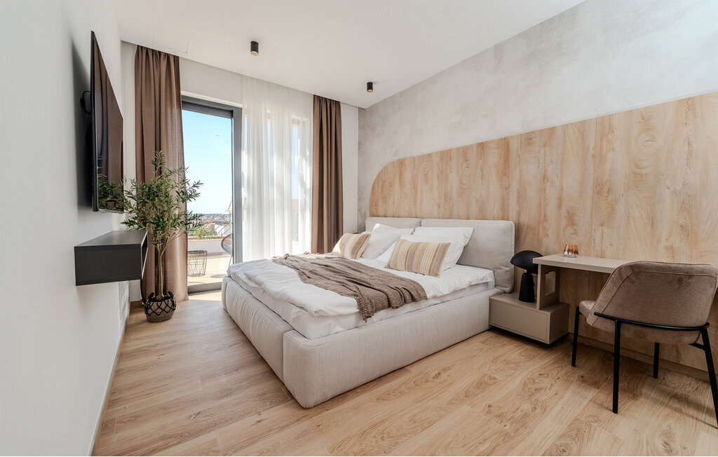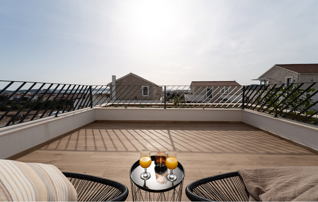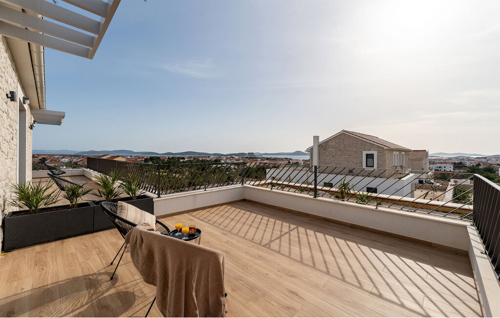 Commencez la journée par un café matinal sur la grande terrasse. La salle de séjour de votre élégant logement vous invite également à vous détendre et à partager des moments de convivialité autour d'un repas ou d'amusants jeux de société. Rassemblez-vous autour de l'élégante table à manger ou installez-vous confortablement sur le canapé pour regarder un bon film. La maison offre de nombreuses possibilités de profiter du temps libre à l'extérieur. Rendez-vous sur la terrasse du premier étage et regardez au loin les eaux bleues de la mer Adriatique scintiller. Préparez des délices culinaires dans la cuisine d'été ombragée et dînez à la longue table en plein air. La piscine offre aux petits et aux grands un rafraîchissement vivifiant et des heures de joie. De nombreuses activités sportives en plein air vous attendent également.