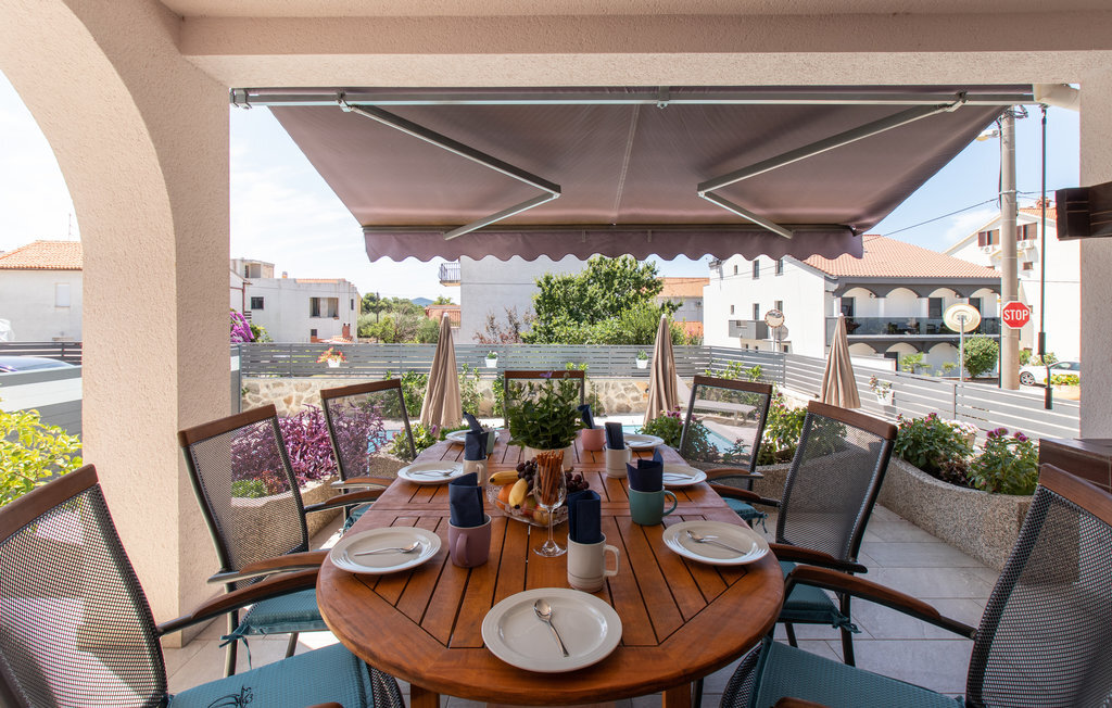 Vous pouvez vous réjouir des courtes distances qui vous séparent des plages de sable des environs. Profitez de vos vacances au bord de la mer et dégustez des plats et des boissons locaux dans les bars et les restaurants des environs. Vous pourrez également faire de belles excursions en bateau dans le magnifique parc national des Kornati ou flâner dans les ruelles de la vieille ville de Zadar et profiter d'un coucher de soleil inoubliable sur la place du Salut au soleil en écoutant les vagues jouer de l'orgue de mer.
