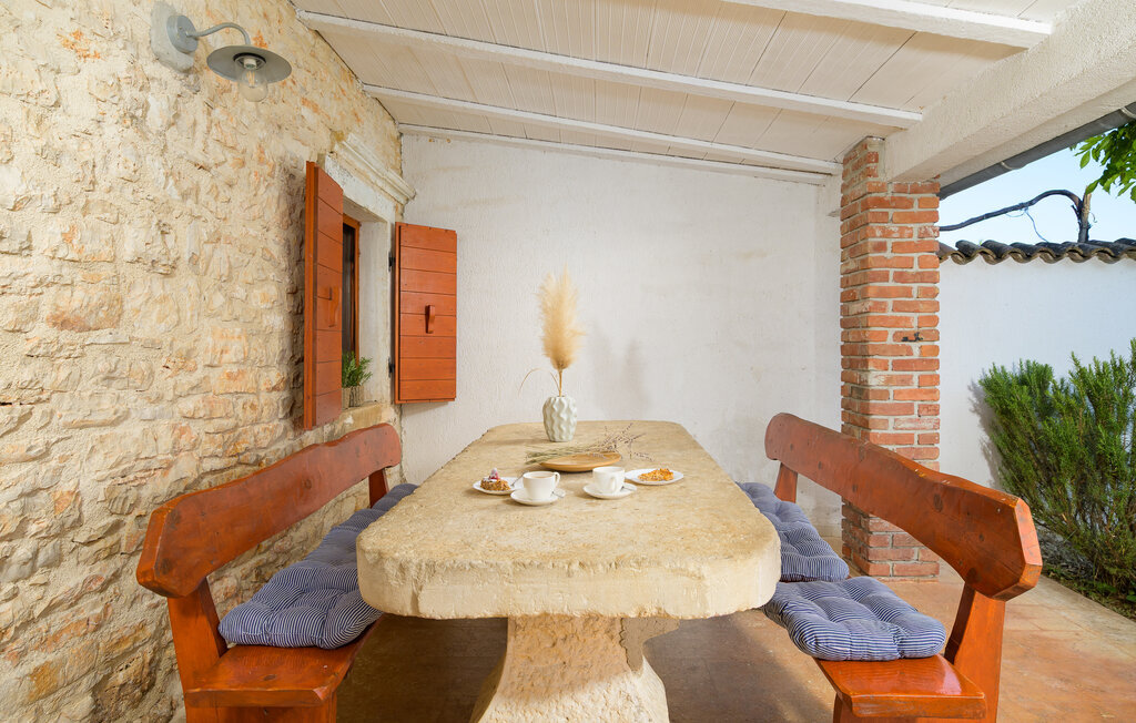 Cette magnifique villa rustique nona Milka est située dans un petit village de Jurii, au sud de la péninsule d'Istrie. À seulement 15 minutes en voiture se trouvent des villes attrayantes : Pula, Vodnjan, Rovinj, qui ne manqueront pas de vous séduire par leur riche offre touristique et gastronomique ainsi que par leur patrimoine culturel et historique. La villa nona Milka a été rénovée en 2015 et a conservé toutes les caractéristiques de l'architecture traditionnelle istrienne. La villa est aménagée de manière à vous procurer un sentiment de confort et de détente grâce à son charme ancien. Elle se compose de 4 belles chambres, de 3 salles de bains confortables, d'une cuisine entièrement équipée et d'un salon parfait pour se détendre l'après-midi. Dans la cour de la villa nona Milka, il y a une piscine de 30 m2 ainsi qu'un abri de jardin avec barbecue, où vous pourrez préparer des repas frais et délicieux pour votre famille et vos amis. En outre, il y a un agréable coin salon extérieur pour 8 personnes au total. La Villa nona Milka offre à ses hôtes des possibilités de divertissement comme le baby-foot, le ping-pong et une petite aire de jeux pour les enfants. La villa nona Milka se trouve dans la vieille ville abandonnée et offre donc à ses hôtes une intimité totale, ce qui garantit des vacances parfaites et détendues dans la plus grande discrétion. La plage la plus proche est à seulement 10 km. Les animaux domestiques sont admis dans ce logement à la discrétion du propriétaire ou moyennant un supplément. Veuillez noter que ce logement n'accepte pas les groupes de jeunes ou les enterrements de vie de garçon. Un groupe de jeunes dans ce logement est composé de personnes de moins de 30 ans. Ne réservez pas ce logement si vous êtes un groupe de jeunes ou un enterrement de vie de garçon, car votre réservation sera refusée après la réservation, ce qui peut également être le cas à l'arrivée dans le logement ou pendant votre séjour, et vous ne serez pas remboursé.