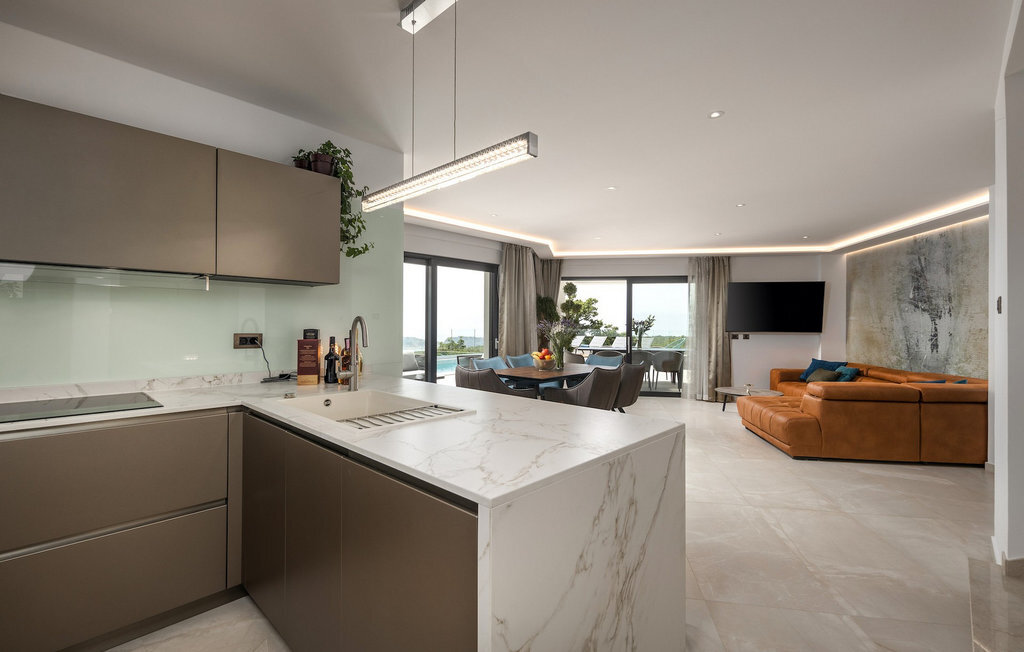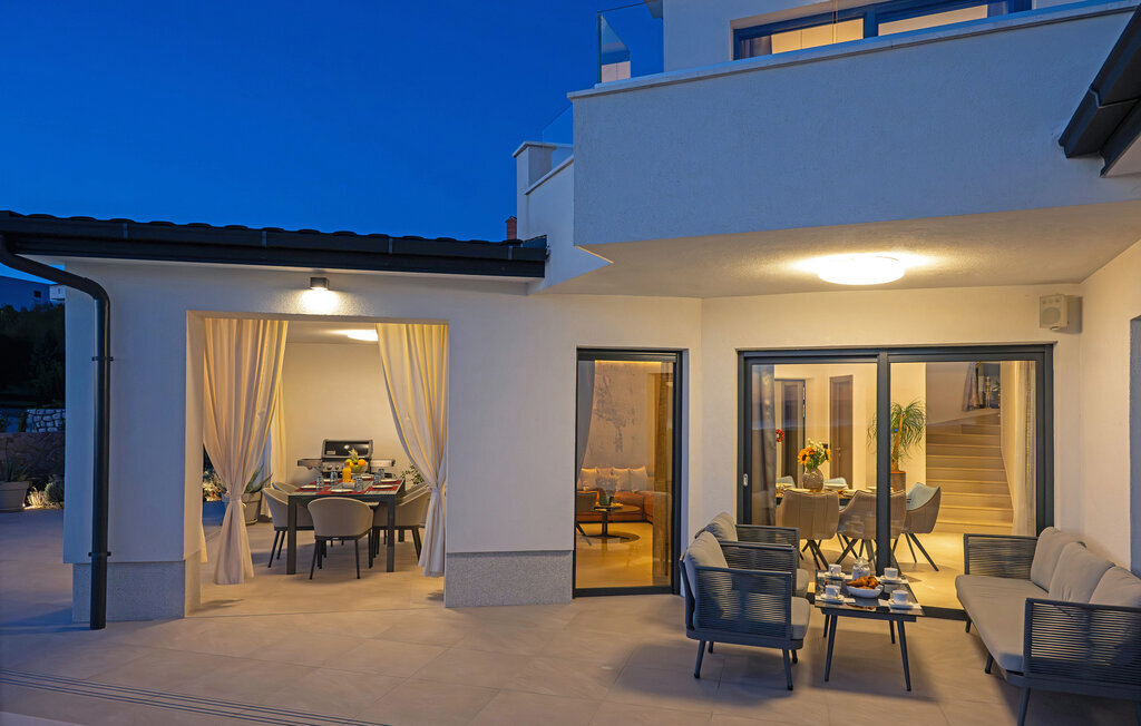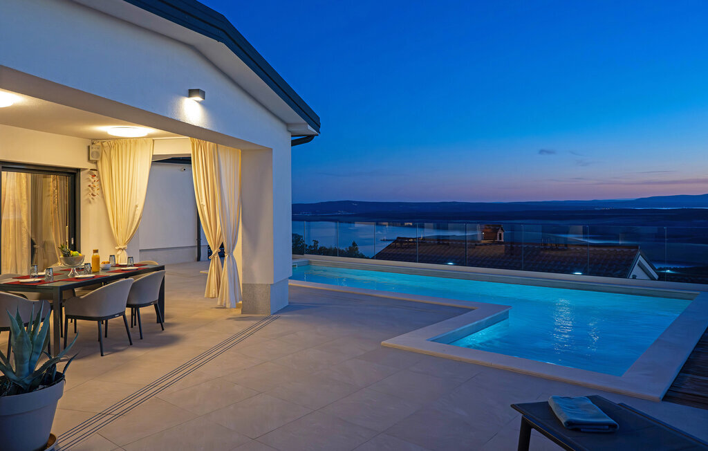 La villa Dumboka se trouve dans le village de Smrika, qui fait partie de Kraljevica, et n'est qu'à 20 km de la ville de Rijeka. Kraljevica est accessible en quelques heures seulement, que vous veniez de Munich (506 km), de Vienne (511 km) ou de Graz (318 km). Si vous souhaitez passer des vacances tranquilles en bonne compagnie avec des amis chers, Villa Dumboka est définitivement le bon choix pour vous ! La Villa Dumboka a été construite en 2021 dans un style architectural moderne et offre un hébergement pour un maximum de 8 personnes. Elle est entièrement climatisée et dispose de 4 chambres à coucher avec lits doubles. Toutes ces chambres disposent également de quatre salles de bain privées. Comme équipement supplémentaire de grande utilité, une machine à laver, un sèche-linge et un fer à repasser seront mis à disposition. En outre, la villa dispose de deux toilettes séparées et d'une salle de bain avec baignoire. Si des enfants vous accompagnent, vous pouvez utiliser un distributeur de nourriture et un lit bébé. Au rez-de-chaussée se trouvent une cuisine moderne et entièrement équipée avec un bar et 4 places assises pour le bar, un salon magnifiquement aménagé avec un canapé d'angle, une table basse et une télévision ainsi qu'une salle à manger avec une table pour 8 personnes. Depuis le salon et la salle à manger, on accède à une terrasse extérieure sur laquelle se trouve une table à manger pour 8 personnes, à côté de laquelle se trouve un barbecue extérieur (gaz). La piscine chauffée de 36 m2 et d'une profondeur de 1,35 m est un endroit où vous pouvez vous rafraîchir le jour ou la nuit et prendre un bain de soleil sur 8 chaises longues. Il y a aussi une taverne avec des toilettes et une salle de jeux. Il y a aussi une douche extérieure. Les plus jeunes se réjouiront de la télévision, de l'aire de jeux en plein air, du baby-foot et de la playstation, et ceux qui souhaitent passer des vacances actives seront ravis de la salle de fitness et, après accord préalable, il est possible de profiter d'un massage relaxant. La Villa Dumboka offre une vue sur la mer depuis la plupart des chambres et, au coucher du soleil, vous pourrez prendre des photos ou faire des tableaux de la nature intacte qui vous entourera pendant votre séjour ! Cinq places de parking sont à votre disposition dans la cour. Parmi les choses intéressantes à Kraljevica, il y a le fait qu'elle est connue pour être l'un des plus anciens chantiers navals de la Méditerranée. De plus, l'Allemand Olschbauer a fondé la première plage et a créé en 1904 l'hôtel Liburnija, qui a ensuite été transformé en sanatorium. Parmi les divertissements et les activités locales que vous pouvez essayer, il y a les visites de vignobles, la baignade sur la plage, la pêche, la plongée, la voile, les visites d'oliveraies et les sports nautiques. Il s'agit certainement d'un endroit où chacun peut trouver quelque chose pour soi et compléter ses vacances de manière individuelle ! Venez vous rendre compte par vous-même de la beauté de cette région et emportez avec vous de beaux souvenirs de la saison parfaite ! Bienvenue à la Villa Dumboka ! Les animaux domestiques sont autorisés dans ce logement à la discrétion du propriétaire ou moyennant un supplément. Veuillez noter que ce logement n'accepte pas les groupes de jeunes ou les enterrements de vie de garçon. Ne réservez pas ce logement si vous êtes un groupe de jeunes ou un enterrement de vie de garçon, car votre réservation sera refusée après la réservation, ce qui peut également être le cas à l'arrivée au logement ou pendant votre séjour, et vous ne serez pas remboursé. Dans la propriété de la villa, nous disposons d'une annexe pour 12 personnes maximum. Nous le proposons avec ou sans skipper (à condition que les hôtes disposent des autorisations nécessaires). Nous proposons également le transport avec notre camionnette. Ces offres font l'objet d'un supplément et d'une réduction pour les hôtes de la villa.