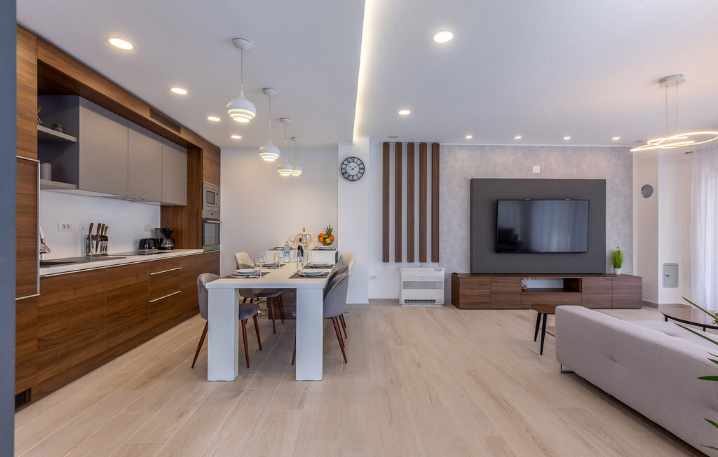 Réjouissez-vous de vos vacances dans cette confortable maison de vacances. La Villa Maestral au design moderne vous offre un espace de vie ouvert avec un canapé confortable, des jeux vidéo et des fléchettes pour passer des moments conviviaux. Dans la cuisine entièrement équipée, vous pouvez cuisiner ensemble et savourer vos repas autour de la table à manger du comptoir de la cuisine. Au rez-de-chaussée, un sauna infrarouge vous attend également pour des moments de détente.